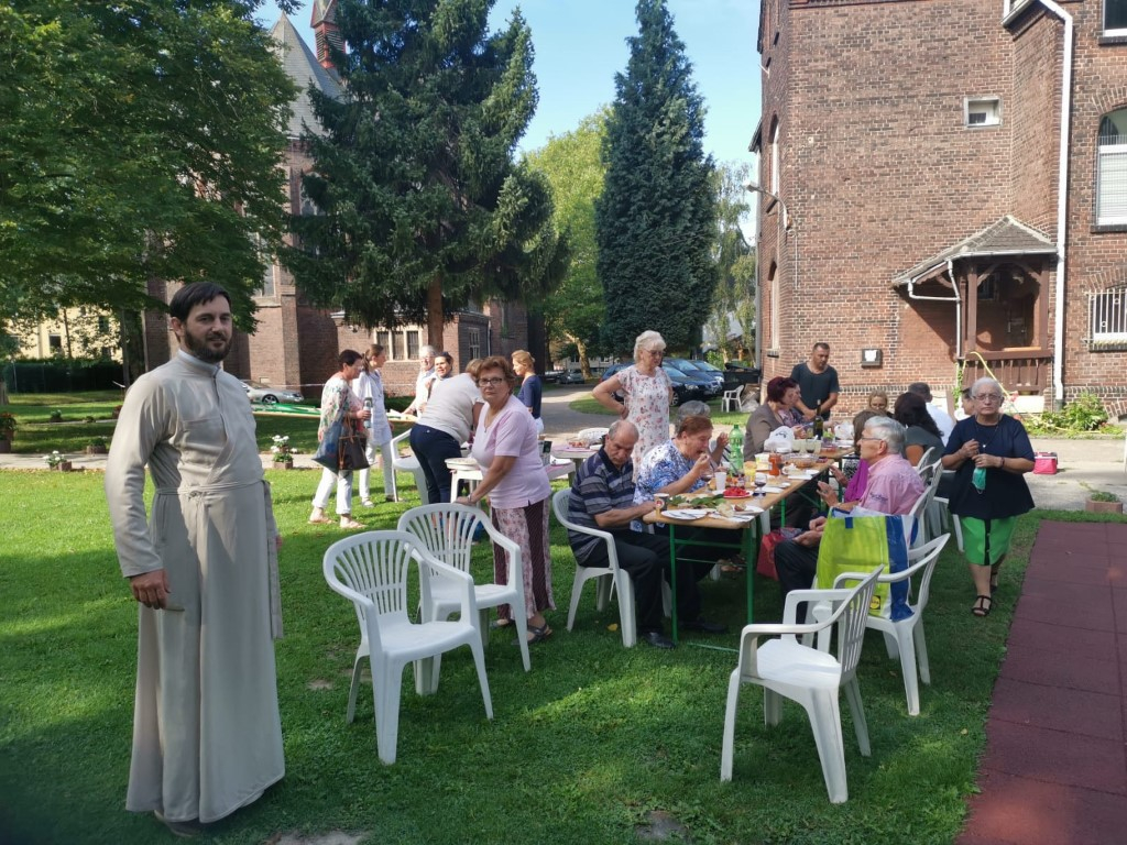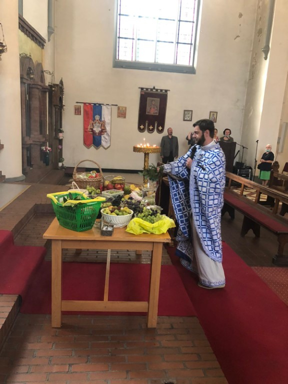 У уторак, 19. августа 2020. године, о празнику Преображења Господњег, светом Литургијом у храму Светог апостола Луке у Дортмунду началствовао је парох дортмундски протојереј Данило Дангубић. Након светог причешћа освештано је грожђе и плодови које су вјерни принијели на благослов. С обзиром да је овај дивни празник ове године пао у радни дан већина учесника свете Литургије били су пензионери. Они су се организовали и у порти саборно доручковали потврђујући тако литургијски етос и дух саборности.