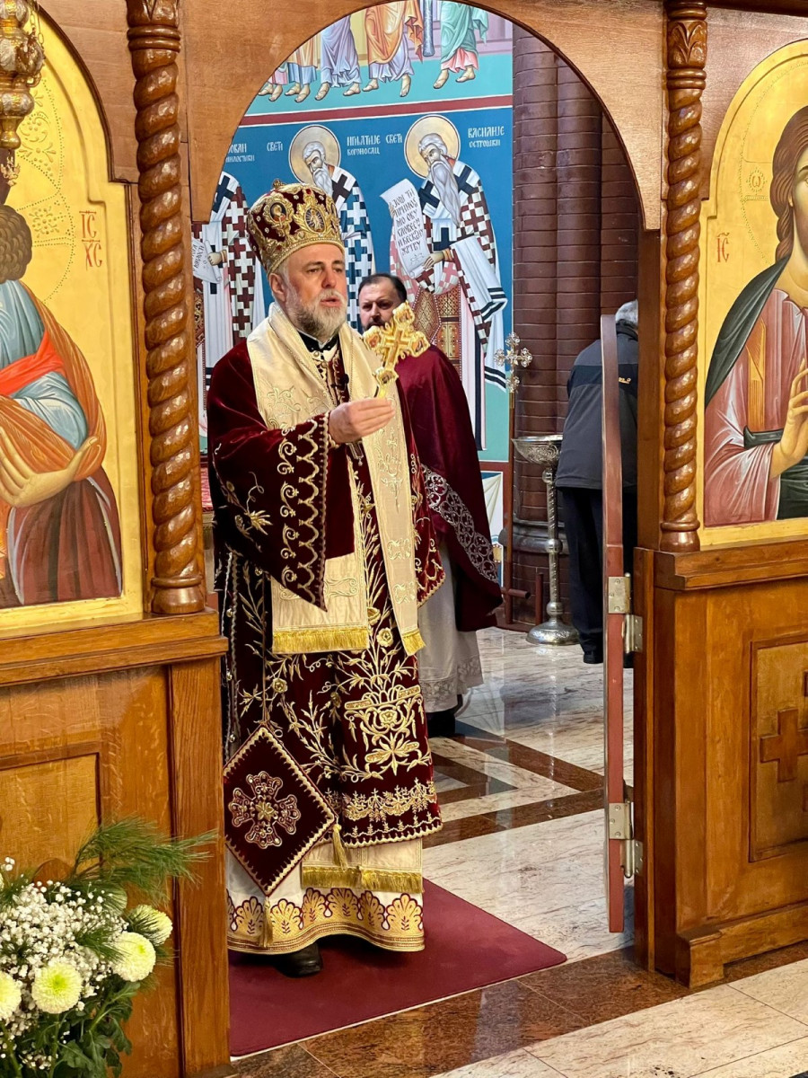 Сутрадан, у недељу 28. новембра на почетку Божићног поста, Свету архијерејску Литургију служио је Преосвећени Епископ Г. Григорије уз саслуживање берлинских пароха о. Вељка Гачића и о. Радомира Колунџића, уз складно појање хора ,,Св. Стефан Дечански”. После прочитаног јевнђелског зачала, беседио је Епископ Григорије: