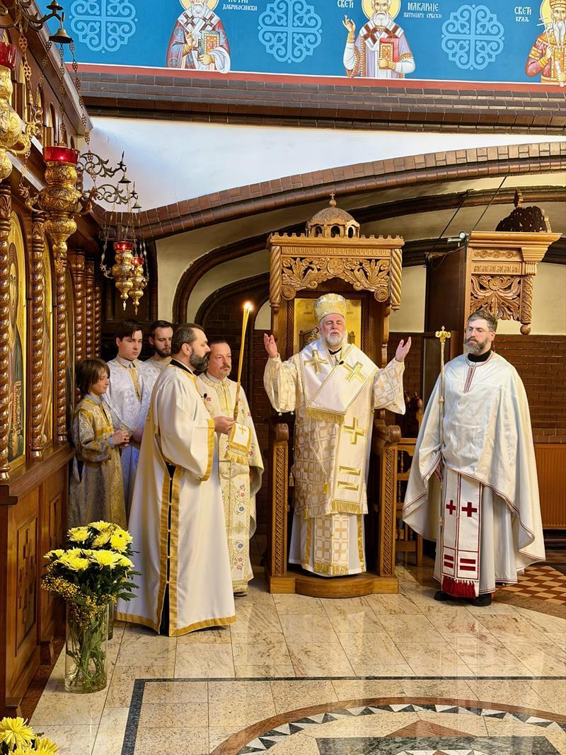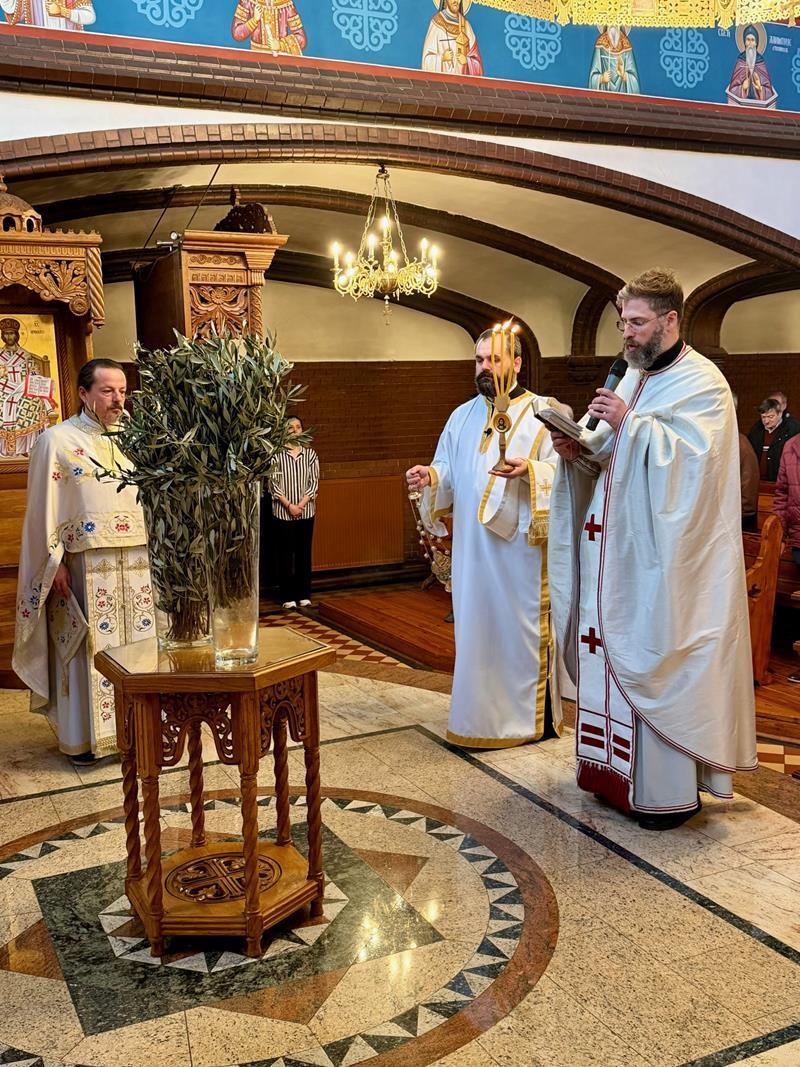 5. априла 2026. године, на празник Уласка Господа Исуса Христа у Јерусалим – Цвети, Његово Високопреосвештенство Архиепископ диселдорфско-берлински и Митрополит немачки г. Григорије служио је свету Литургију у храму Светог Саве у Берлину. Његовом Високопреосвештенству саслуживали су: протојереј Радомир Колунџић, јереј Александар Дебељак и јерођакон Василије Старовлах.