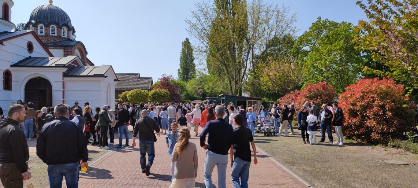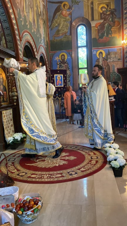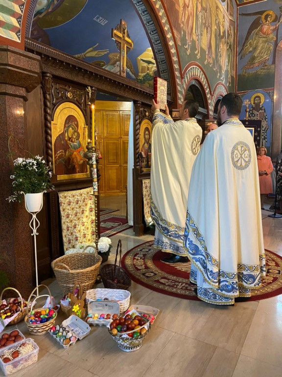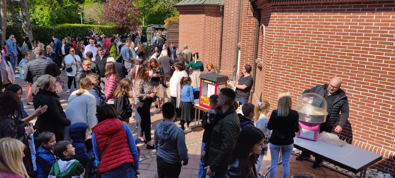 Ове године након служења Свете Литургије у поподневним часовима у порти нашег Саборног храма уприличено је опште народно весеље. Како бисмо употпунили васкршњи доживљај, потрудили смо се да у садржају који је предвиђен акценат буде на породици, на тој малој цркви која заправо јесте матица свега. Вођени овим мотивом, одлучили смо да за породице осмислимо разноразне садржаје у којима ће уживати сви чланови, почевши од оних најмлађих на којима свет и црква почивају, преко родитеља и родбине, све до најстаријих, којима све то и дугујемо. Непосредно након Литургије Епископ Јован позвао је најмлађе да узму учешће у разноразним дечијим играма, предвођене од стране госпође Биљане Влаховић и госпође Андријане Стевановић. Први део игара састојао се у тражењу васкршњих јаја и поклончића у порти наше цркве. На ову игру којој су се много обродовали малишани надовезало се такмичење у тркању са јајима у кашикама и окончало се такмичењем у надметању у тврдоћи јајета. Циљ је био постигнут, деца су била испуњена и задовољна, док су се за то време родитељи као и остали верни народ окупили у парохијском дому и славили уз музику и послужење до касног поподнева. Овом приликом наш Епископ и братство храма желе из свег срца да се захвале свим парохијанима и парохијанкама који су несебично, као и сваке године до сада, учествовали не само у организацији свега, већ и у реализацији истог. Нарочито смо захвални људима који несебично и од срца, већ дужи низ година помажу око припрема и организације прославе великих празника током године, члановима Црквеног одбора, чланицама Кола српских сестара, као и свим парохијанима који помажу овом храму током недељне и празничне Литургије.