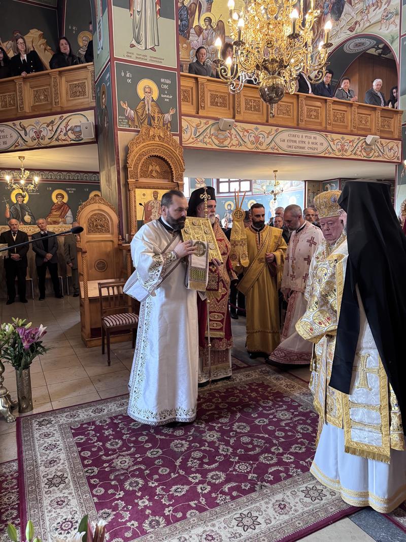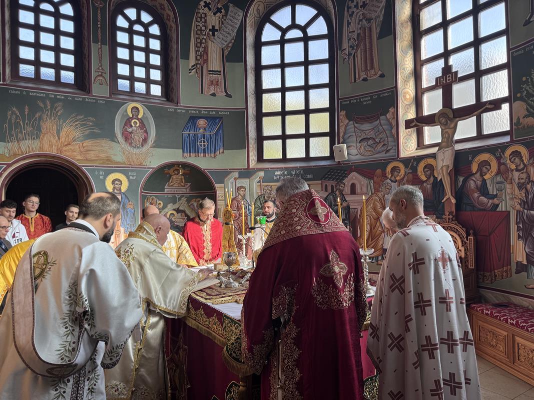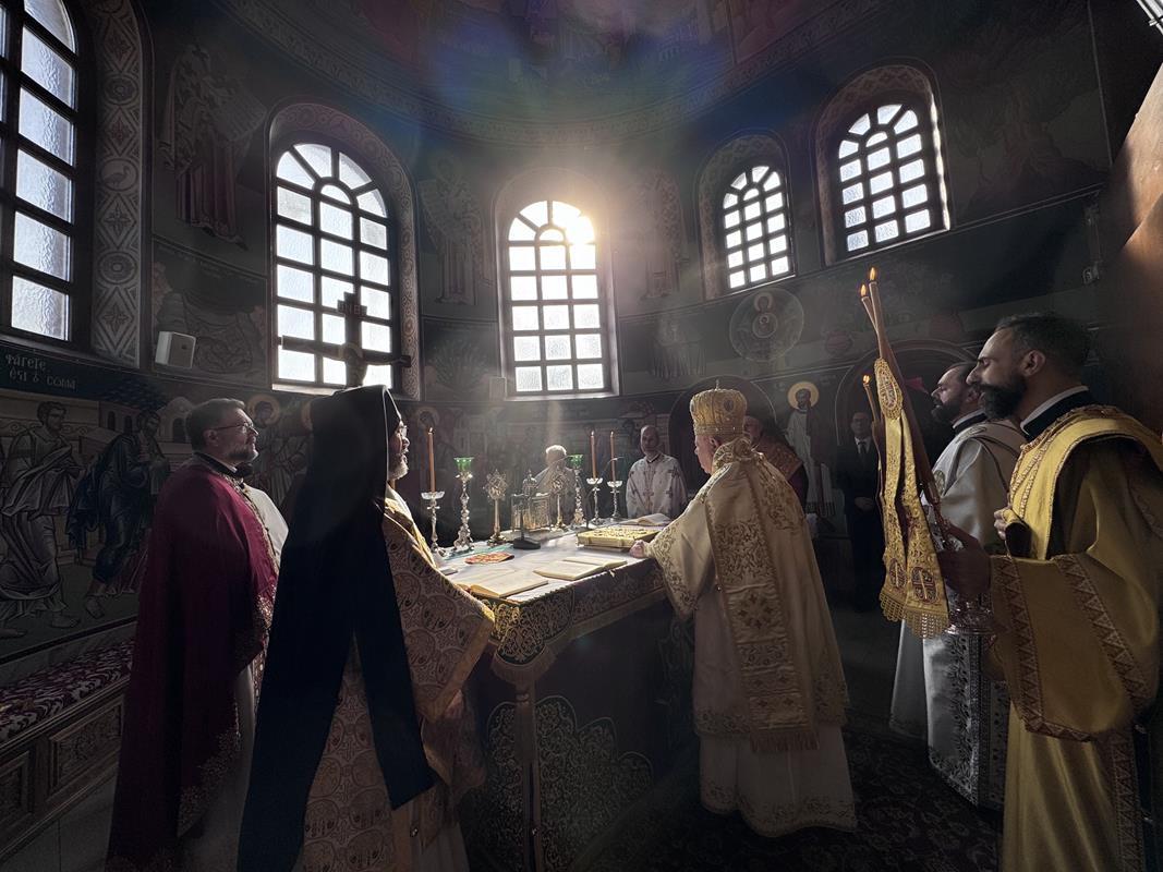 Светом Литургијом началствовао је Високопреовећени Митрополит немачки и Егзарх Централне Европе Цариградске патријаршије г. Августин уз саслужење Високопреосвећеног Архиепископа диселдорфско-берлинског и Митрополита немачког г. Григорија, Преосвећеног Епископа христупољског г. Емануила (Цариградска патријаршија) и више свештенослужитеља.