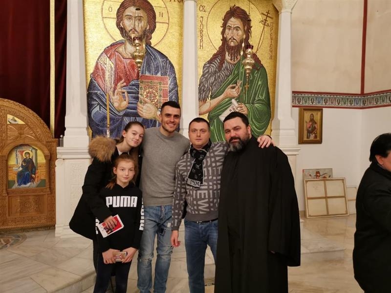У недељу Милостивог Самарјанина у храм Васкрсења Господњег дошли су чувени спортисти Мијат Гаћиновић, Филип Костић и Дејан Јовељић, који наступају за франкфуртски клуб Ајнтрахт (Eintracht) и за репрезентативни тим Републике Србије. Са њима је био и чувени Драгослав Степановић. Сусрет са дјецом у храму и разговор са вјерницима били су на одушевљење младима. Наши спортисти изразили су велико задовољство досадашњим грађевинским радовима у храму (подом, фрескама, звоником…) и подржавају предстојеће планове рада. За дар су од Црквене општине добили Свето Писмо и књигу ,,Гледајмо се у очи” коју је написао наш Владика Г. Григорије.