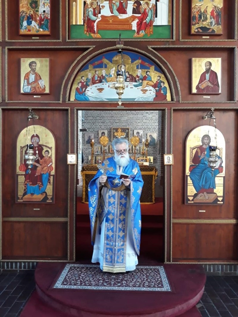 У току Свете Литургије, већ трећи пут заредом, чланови парохије келнске, у својим домовима, пред својим иконама, принели су јутарње молитвено правило, као уздарје заједничкој служби Богу. Иако физички одвојени, снага заједничке молитве осетила се у сваком дому. Оваква молитвена радост подстакла је наше парохијане, али и браћу и сестре из других градова и земаља, да се прикључе нашој акцији #molisekodkuće#betezuhause#prayathome. Овом приликом је, велики број честитих породица, не само из наше парохије и из Немачке, већ и из Србије, Аустрије и Енглеске, пожелевши да буде део наше ,,литије“, послао фотографије својих породица испред својих кућних икона. Света Литургија, која је служена у нашем храму, без присуства верника, појачана је молитвама свих сабраних у својом домовима и тиме добила димензију небеског сабрања на земљи.