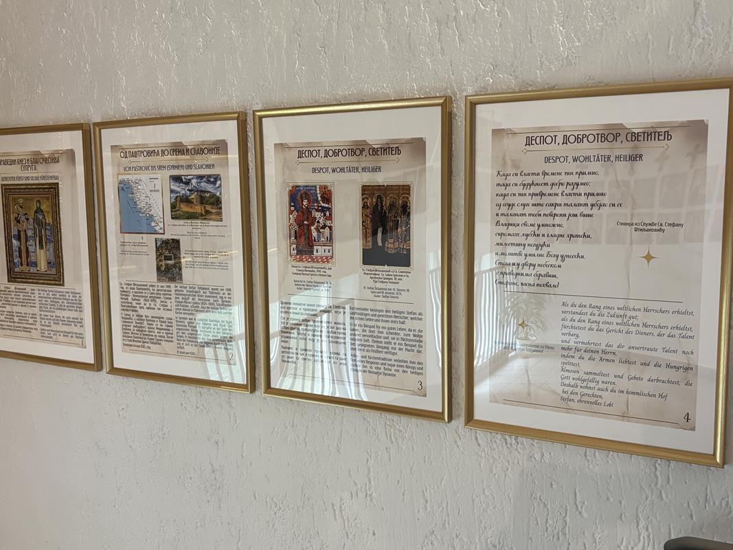 У оквиру овогодишње прославе парох аугзбуршки и старешина храма, презвитер Ненад Живковић, свечано је отворио сталну поставку на тему Светог Стефана и Јелене-Јелисавете Штиљановић. Изложба је приређена двојезично, на српском и немачком језику, и има за циљ ближе упознавање верника и свих посетилаца наше цркве са ликом и наслеђем наших светих заштитника. На 7 инфо плаката који се састоје од краћег текста и пратећих илустрација приближен је живот, служење и деловање светих Стефана и Јелене, тако да се сви који долазе у наш храм сада могу ближе упознати са њиховим ликом и примером. Свети Стефан и Јелена пример су како благочестивог брачног живота тако и служења народу кроз поверену им земаљску моћ заповедништва. Светог Стефана Црква Божија памти као праведног и милостивог, а Јелену, која је у монаштву понела име Јелисавета, као благочестиву.