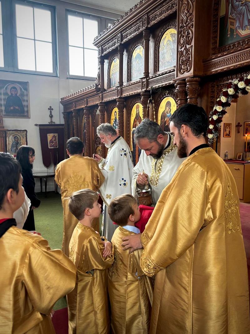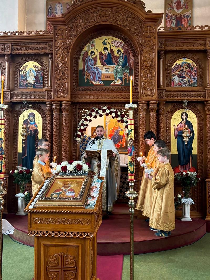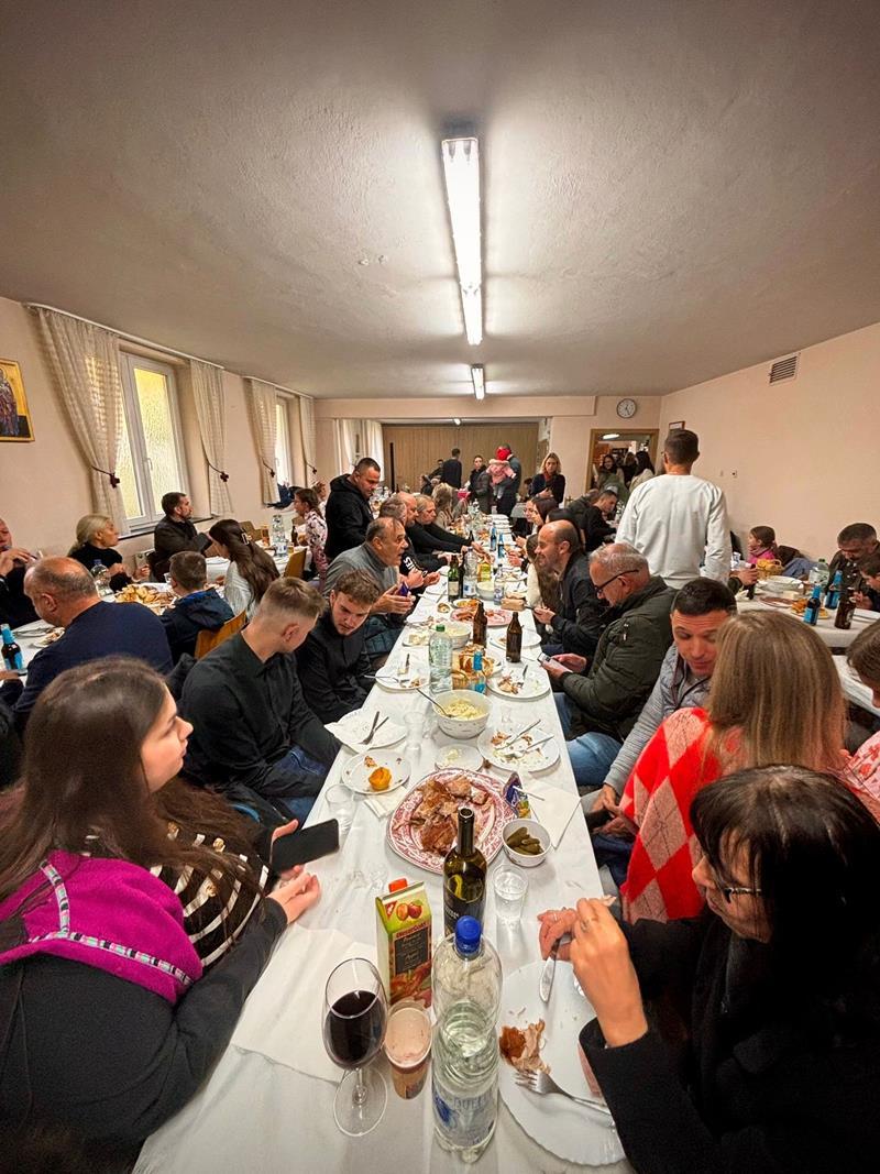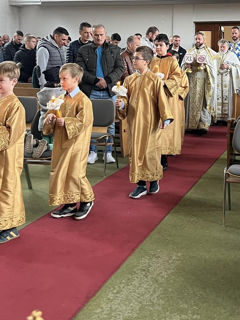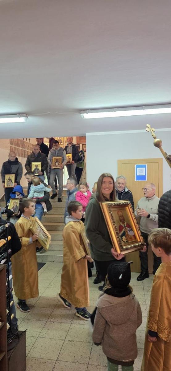 Након божанствене Литургије ишло се у литију око цркве, а онда је обављено и благосиљање славских знамења. Домаћини овогодишње прославе били су Драган и Дајана Ђукић са децом, Младен и Јована Поповић са децом и Станија Етерер. Они су се уз помоћ наше парохије великодушно постарали око припреме послужења, односно трпезе љубави и целокупне прославе, на чему им благодаримо и молимо од Бога сваки благослов.