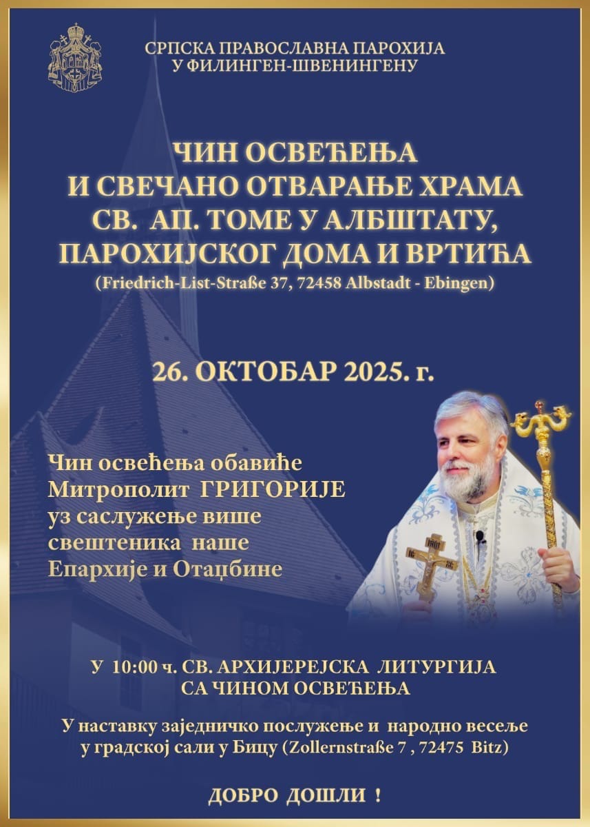 Најава: Освећење храма Светог апостола Томе у Албштату