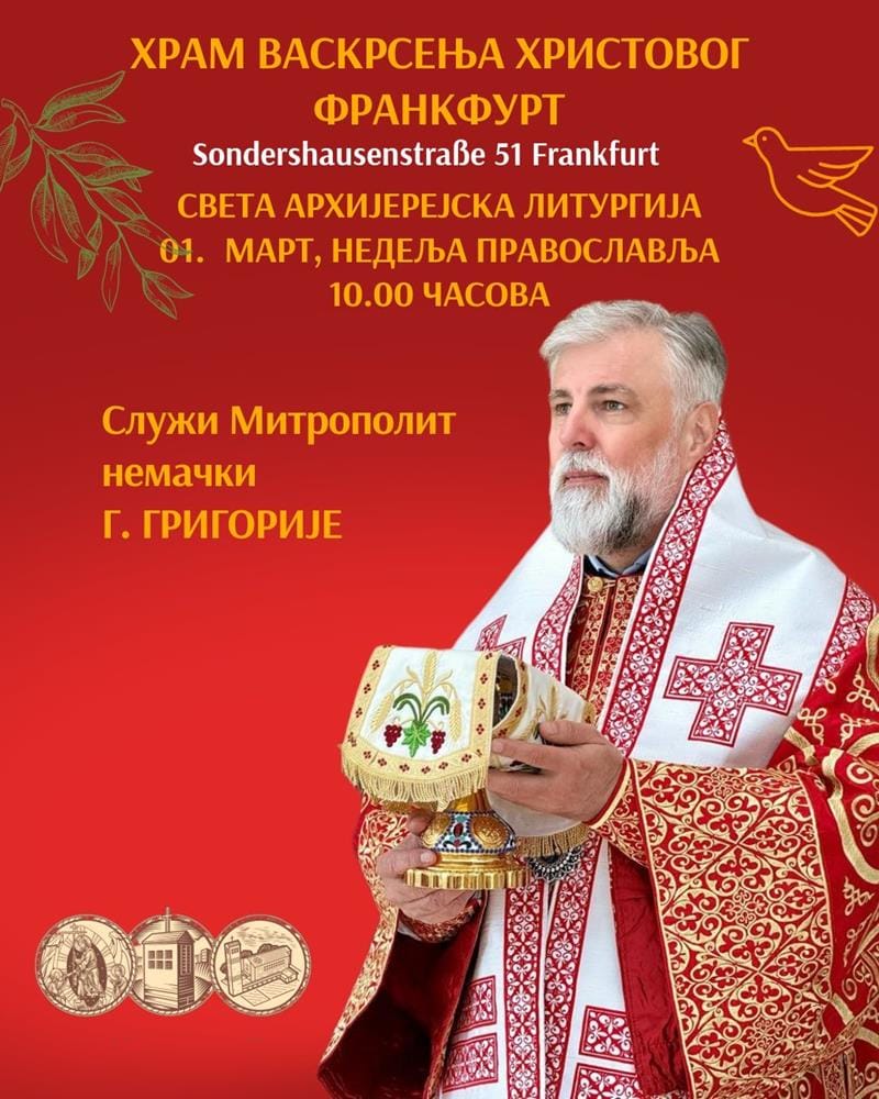 Најава: Света архијерејска Литургија у Франкфурту на Мајни