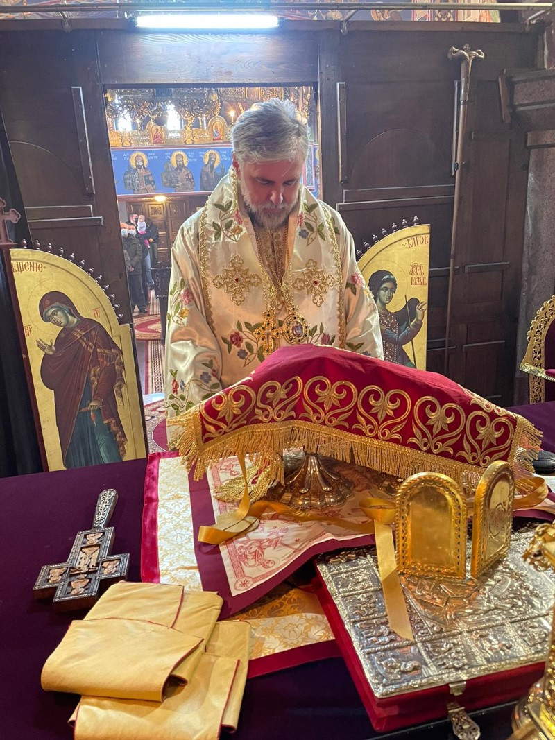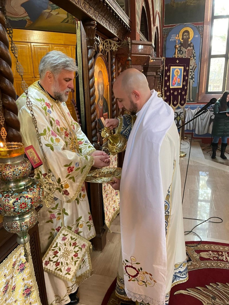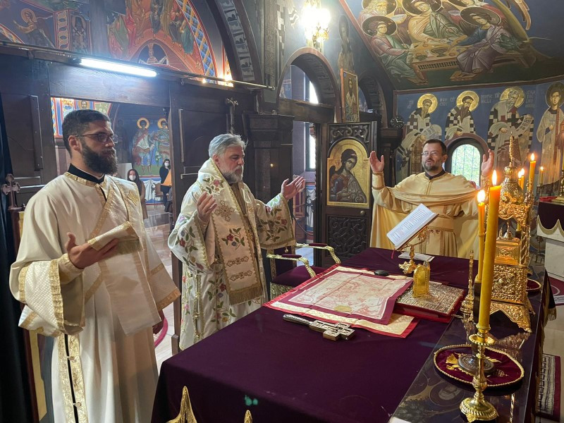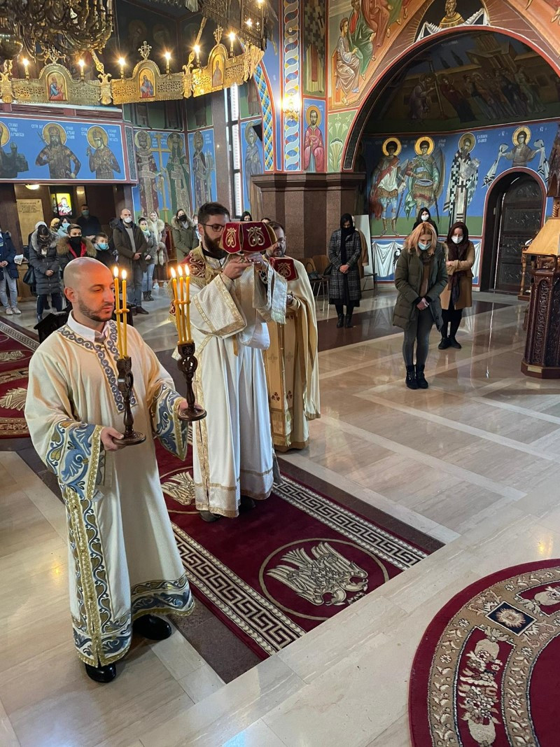Прву Свету Литургију служио је свештеник Александар Секулић а другу, Његово Преосвештенство Епископ Диселдорфа и Немачке Господин Григорије уз саслужење свештеника Небојше Ракића и ђакона Александра Дебељака.