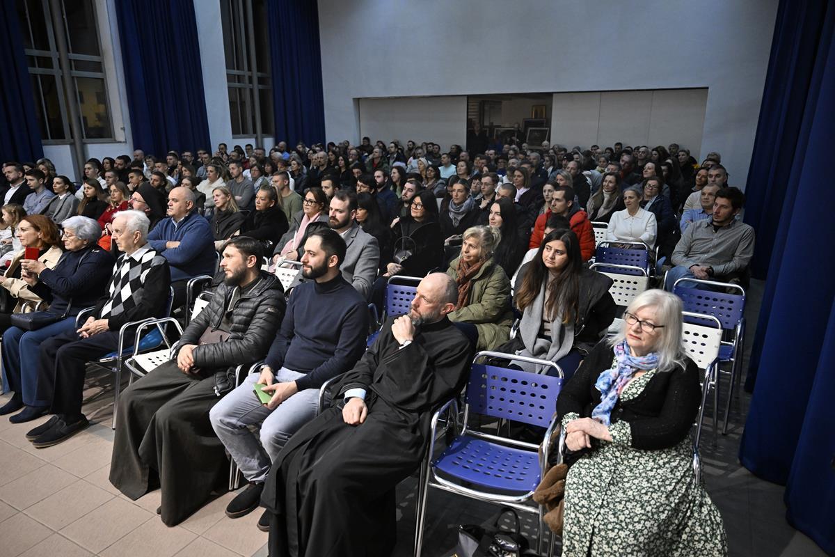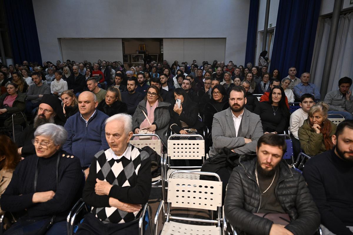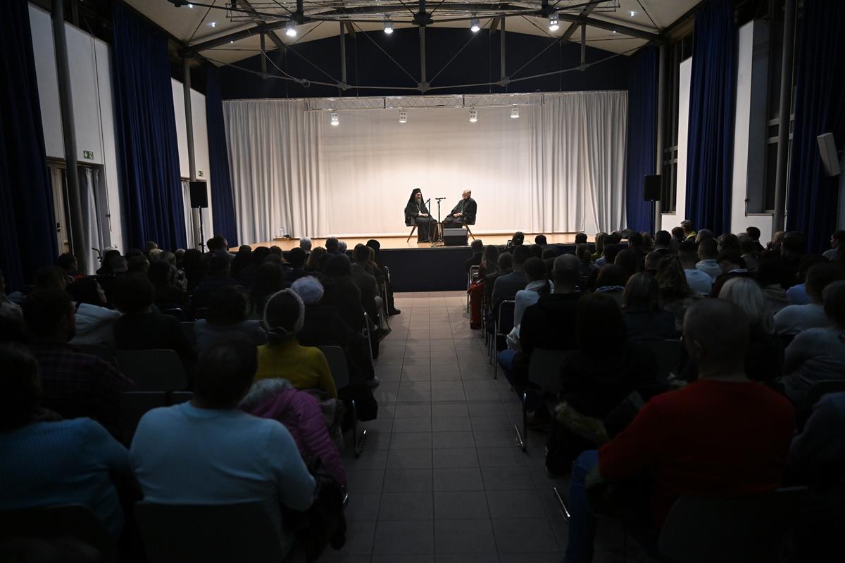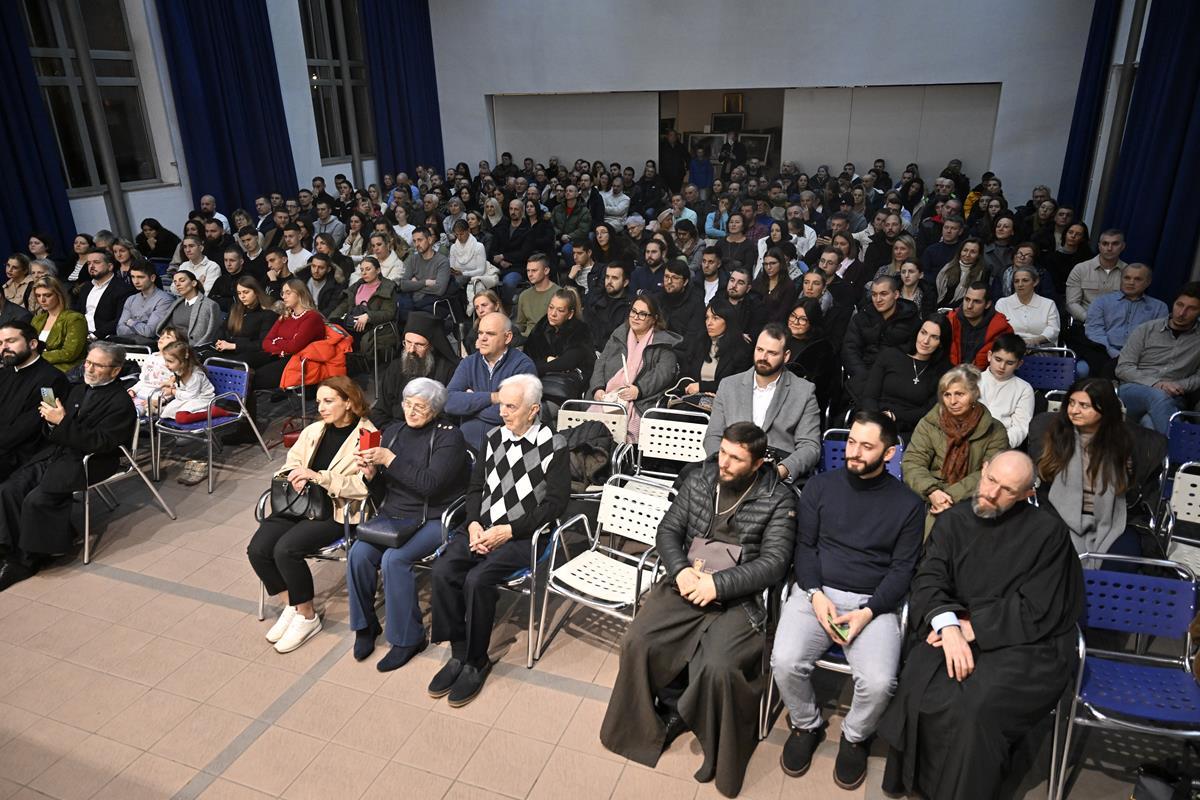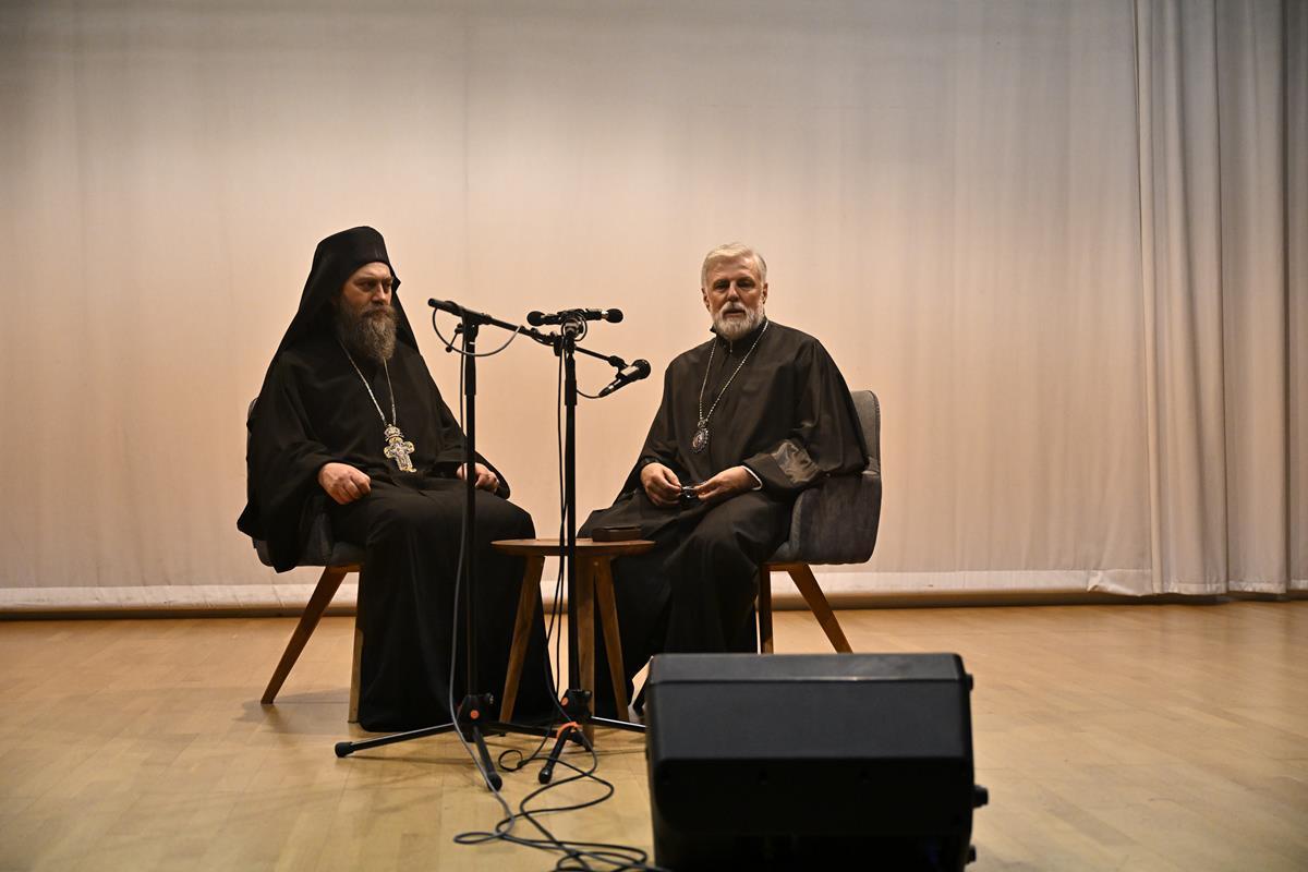 Након дочека и вечерњег богослужења, игуман Манастира Хиландара архимандрит Методије је учествовао у разговору који је у сали парохијског центра водио Митрополит Григорије.