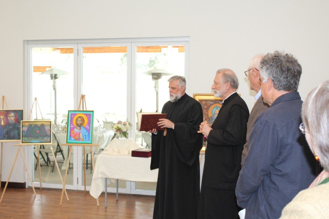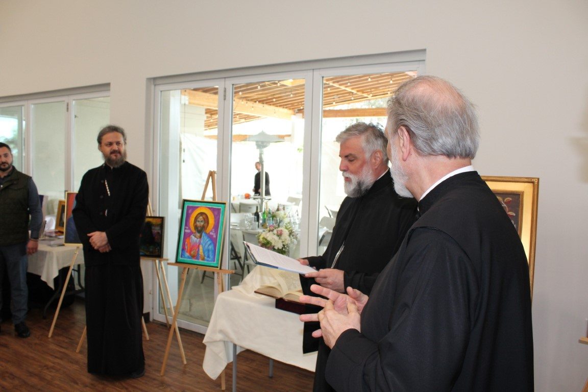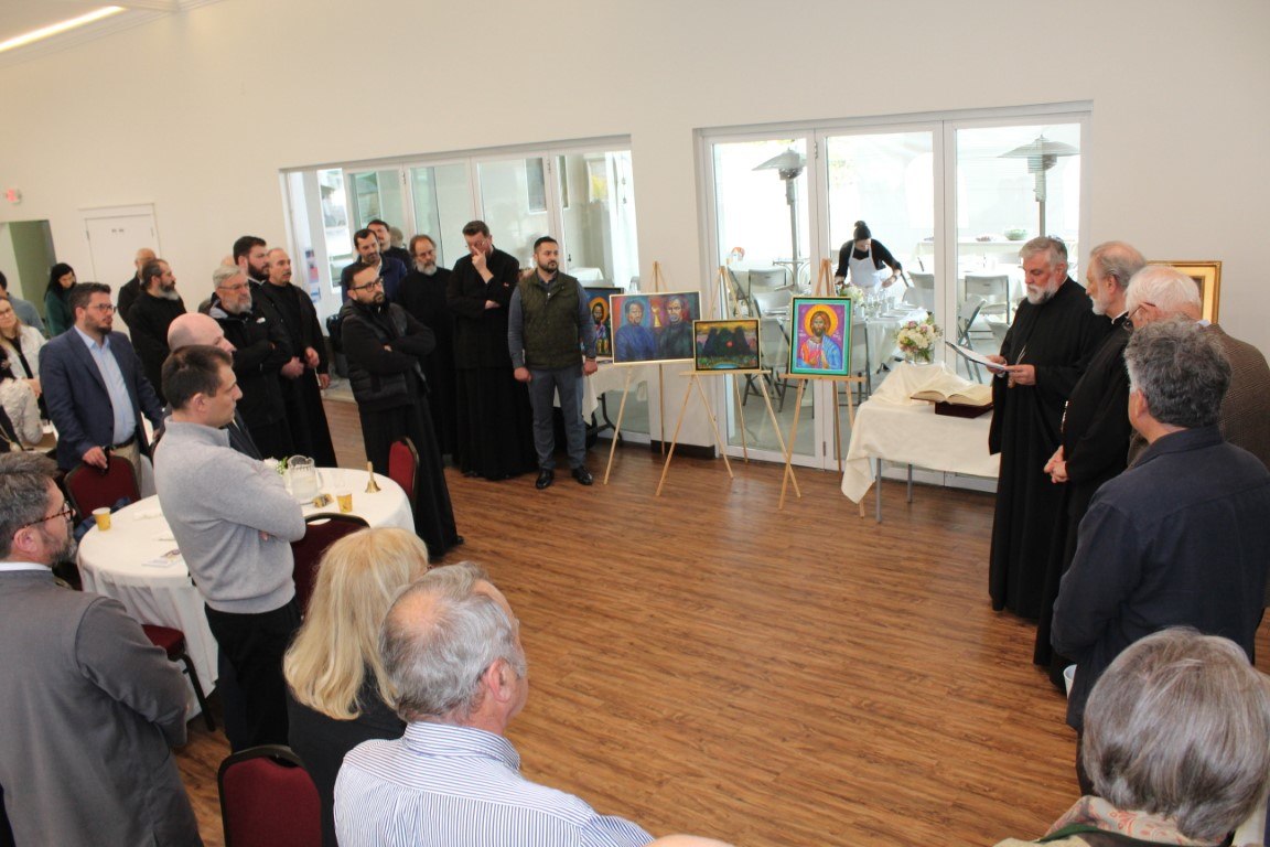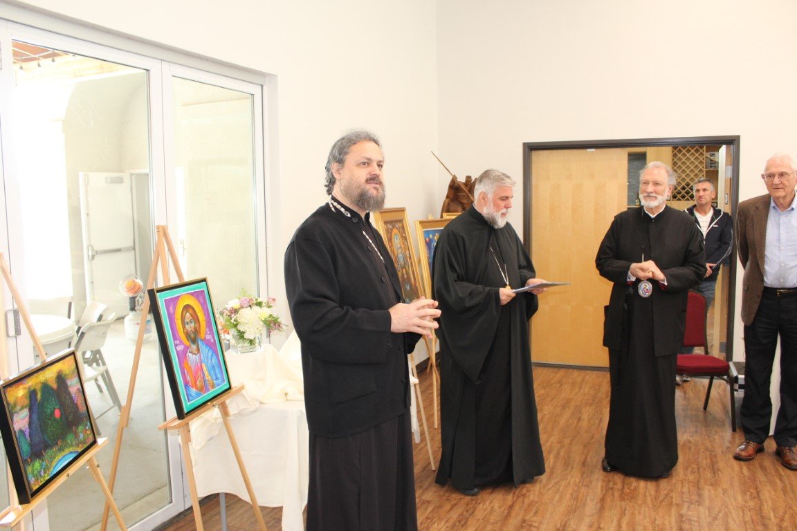У понедјељак, 20. фебруара 2023. године, након вечерњег богослужења, добродошлицу присутним гостима пожелио је Његово Преосвештенство Епископ источноамерички г. Иринеј у присуству Епископâ: канадског Митрофана, новограчаничког и средњозападноамеричког Лонгина, Диселдорфа и Њемачке Григорија. Поводом изложбе сликâ Владике Максима, Епископ Иринеј говорио је о карактеристикама владикиног уметничког дјела као својеврсног правца у сликарству између Византије и Запада.