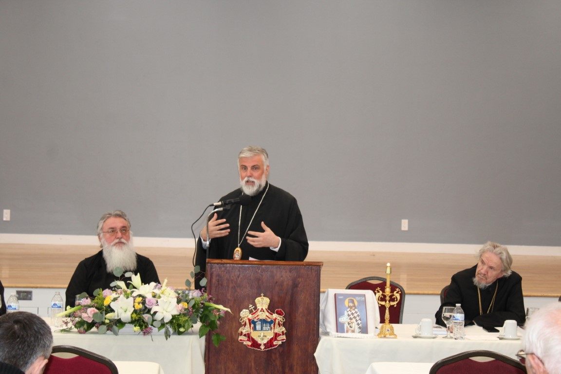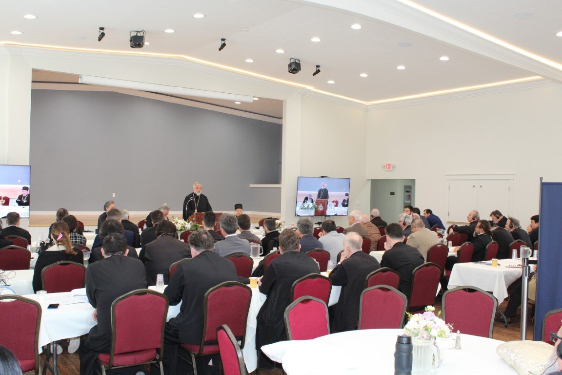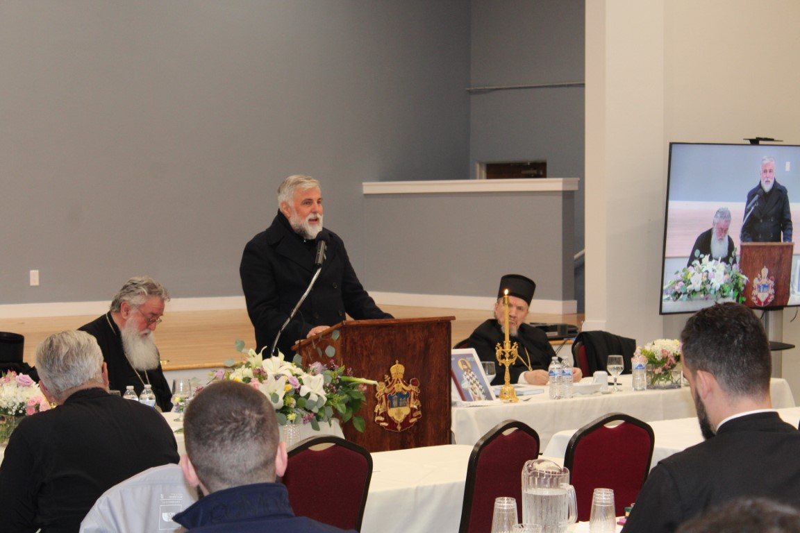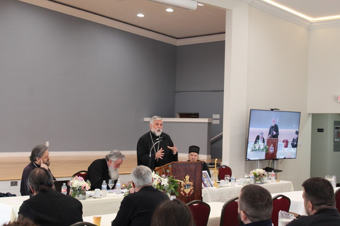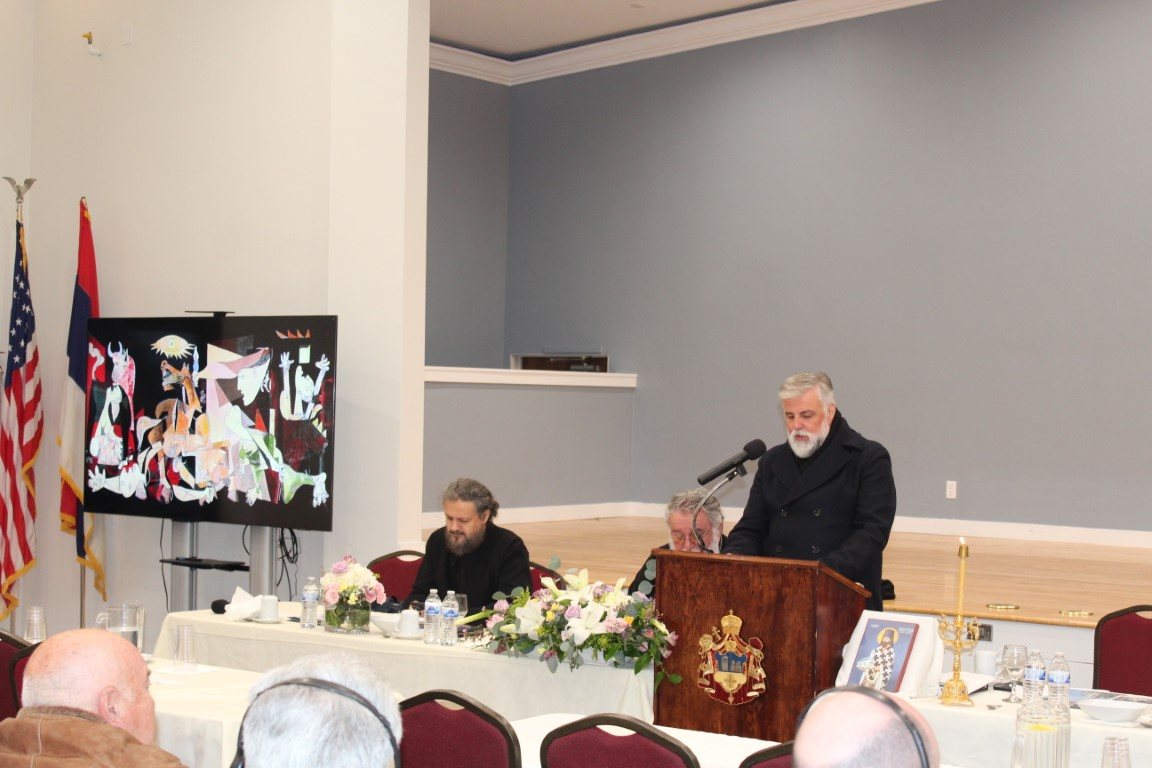 У понедјељак, 20. фебруара 2023. године, након вечерњег богослужења, добродошлицу присутним гостима пожелио је Његово Преосвештенство Епископ источноамерички г. Иринеј у присуству Епископâ: канадског Митрофана, новограчаничког и средњозападноамеричког Лонгина, Диселдорфа и Њемачке Григорија. Поводом изложбе сликâ Владике Максима, Епископ Иринеј говорио је о карактеристикама владикиног уметничког дјела као својеврсног правца у сликарству између Византије и Запада.