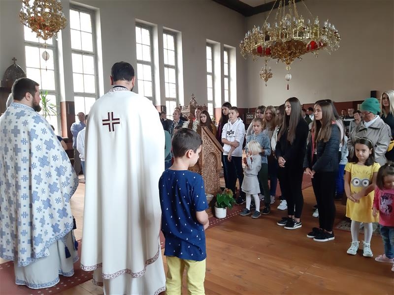 Литургијским сабрањем началствовао је некадашњи парох заједнице отац Јован Марић уз саслуживање јеромонаха Јована Станојевића и садашњег пароха Зорана Илића. Окупљеном народу ријечима поуке након Јеванђеља обратио се отац Зоран зажељевши да испуњавање заповијести Господњих припреми срца наша за сусрет са Господом и Његово обитавање у нама, да сусрет са Њим не би изазвао разочарање као код богатог младића. Литургијско сабрање завршено је подјелом симболичних поклона школарцима са поруком да им сви одрасли желе успјех у школовању и очување дјечије радости током читавог живота.