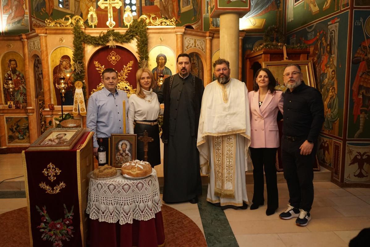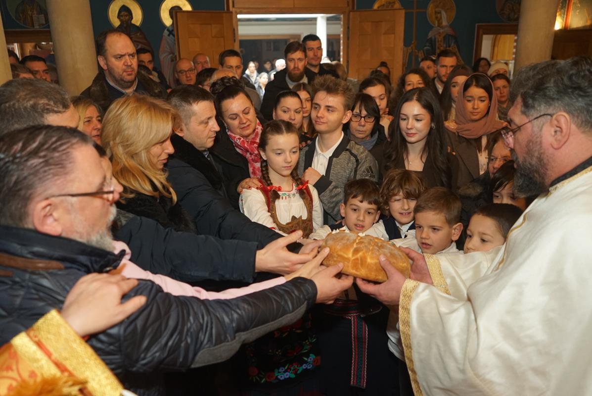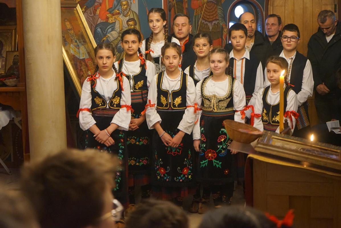 Светом Литургијом је началствовао протојереј Саша Момировић, који је поучио верни народ надахнутом беседом, осврћући се на значај и улогу коју је имала беседа Светога Саве ,,О правој вери”. Оцу Саши саслуживао је ђакон Матијас Борхерт, својим појањем службу је украсио парохијски хор ,,Свети Симеон Мороточиви”, док је за певницом појао старешина храма протонамесник Александар Перковић.