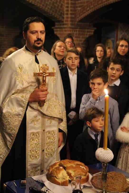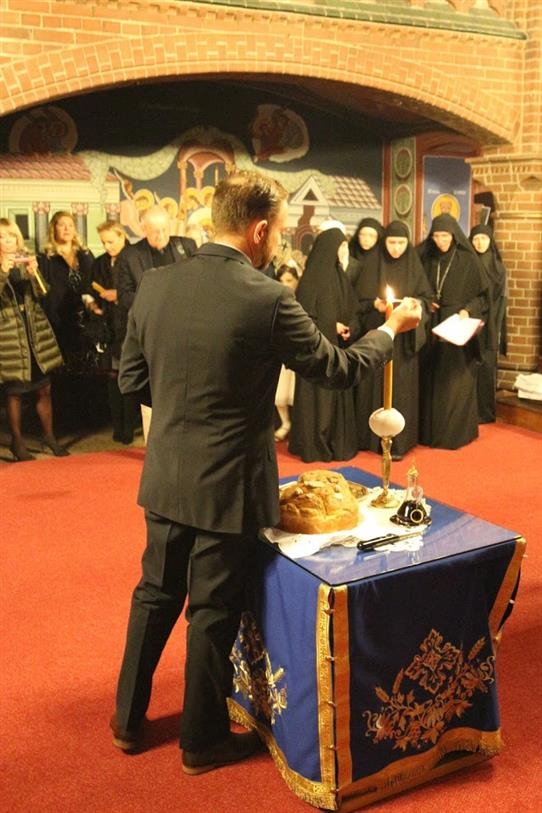 Прослава је почела вечерњим богослужењем, које је по благослову Његовог Преосвештенства Господина Григорија Епископа Дизелдорфског и Немачког, служио протонамесник Александар Перковић парох каселски. Након вечерње службе и сечења славског колача, које је ове године припремио домаћин овогодишњег сабрања др. Ђорђе Марковић из Дармштата са породицом, отац Александар је прочитао посланицу Епископа Григорија коју је упутио лекарима: