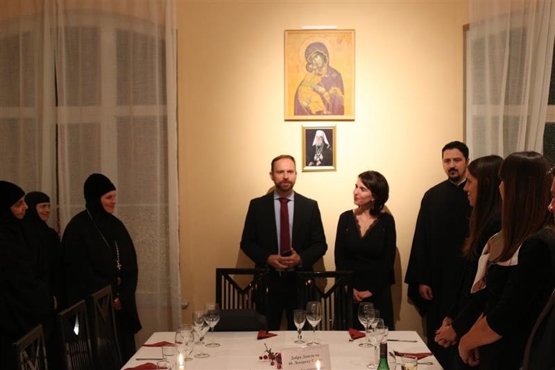 Славље је настављено у манастирској сали уз богату трпезу и пригодну музику за коју се побринуо домаћин Ђорђе и председник лекарског друштва др. Милан Станковић из Кобурга.