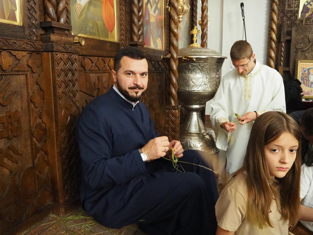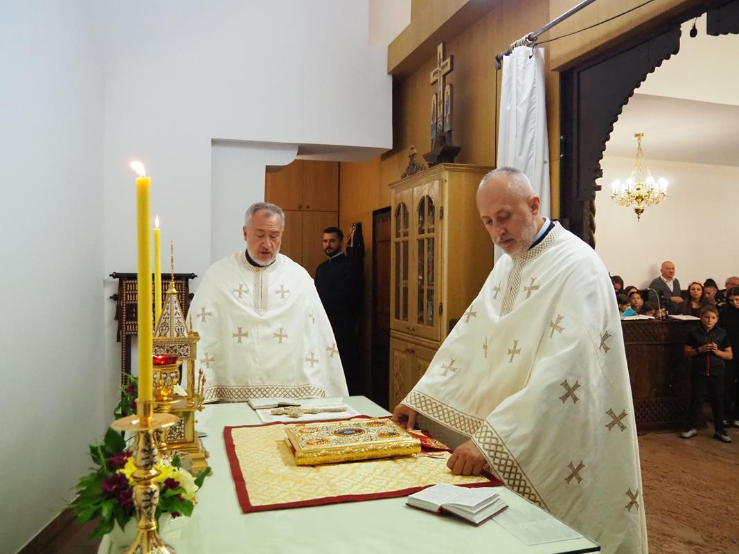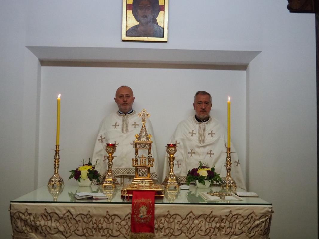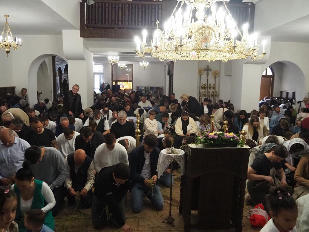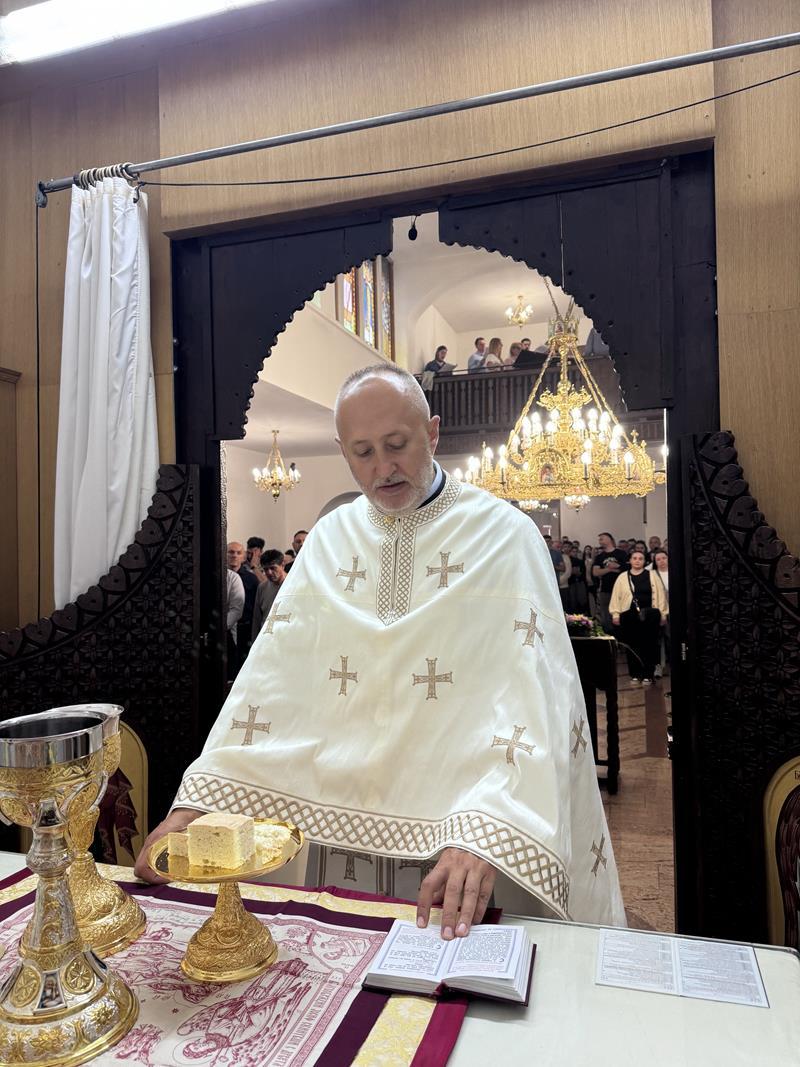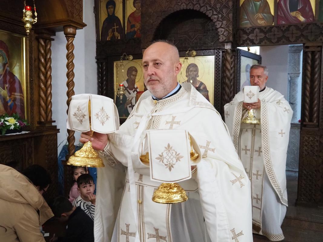 Свету Литургију служио је протојереј Станко Ракић, уз саслужење протојереја Драгослава Ћорковића. У надахнутој беседи, отац Станко подсетио је да је на данашњи дан, педесет дана по Васкрсењу, Свети Дух сишао на апостоле у облику огњених језика, испунивши Христово обећање да ће им послати Утешитеља. Тим догађајем започела је мисија Цркве у свету – зато овај дан називамо и рођенданом Цркве.