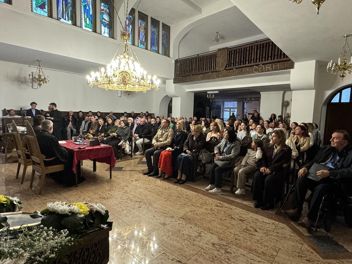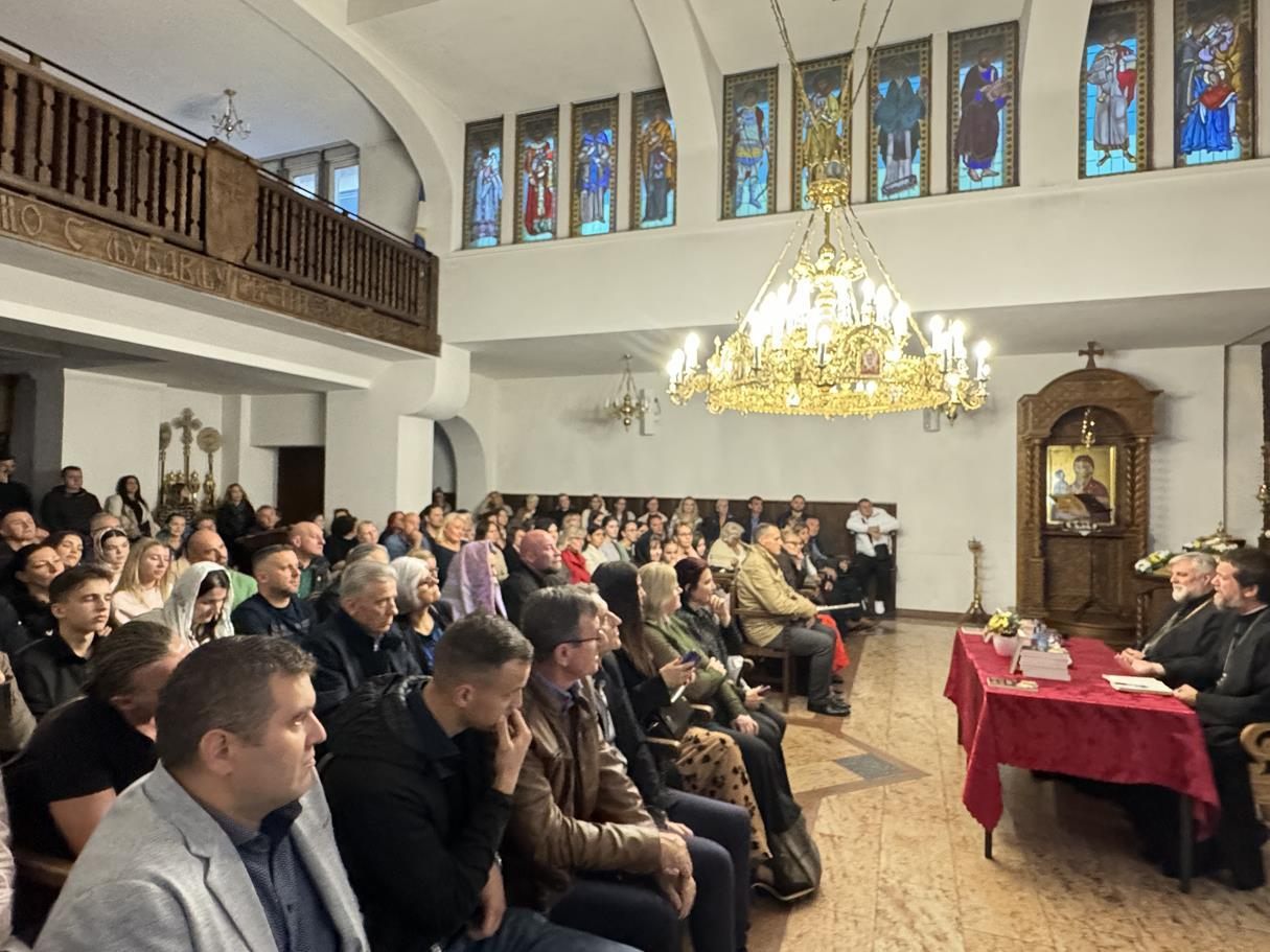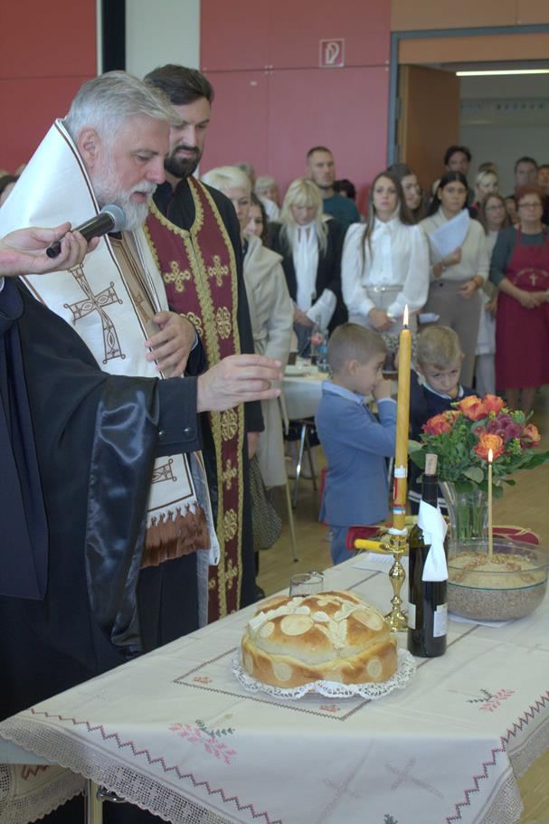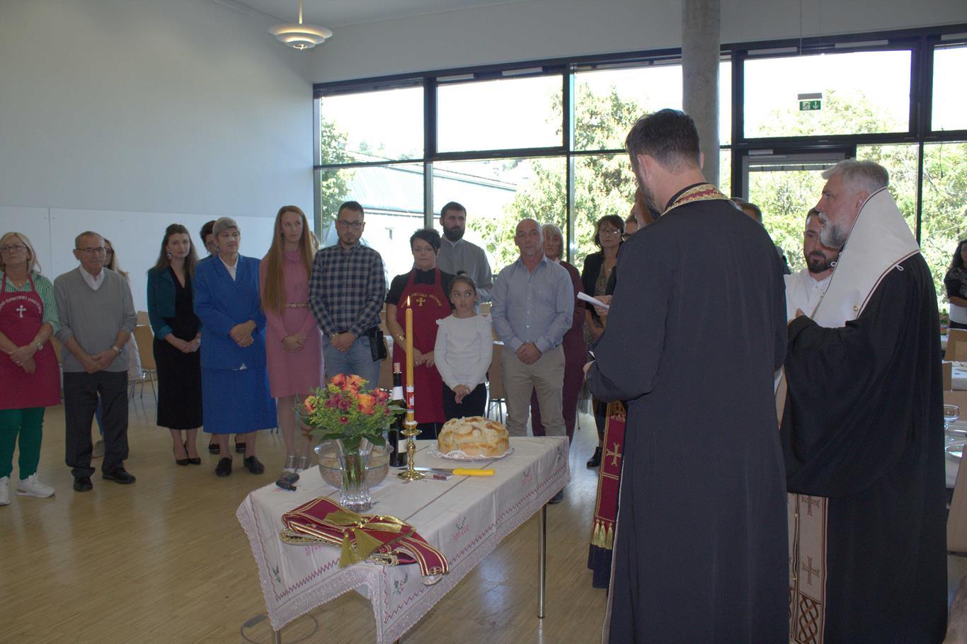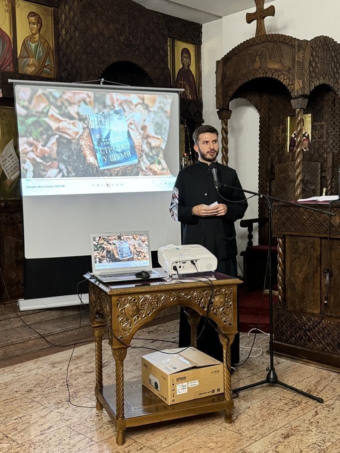 У суботу, 14. септембра, у храму Сабора српских светитеља служено је празнично вечерње са петохлебницом коме је присуствовао Његово Високопреосвештенство Архиепископ диселдорфско-берлински и Митрополит немачки г. Григорије. Након вечерњег богослужења, одржана је промоција новог романа Странац у шуми митрополита Григорија. На промоције је, осим аутора књиге, говорио и протојереј-ставрофор Гојко Перовић.