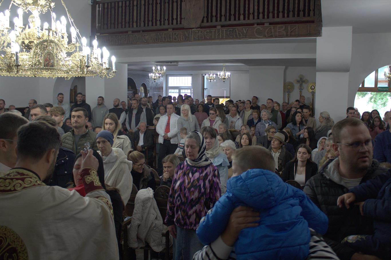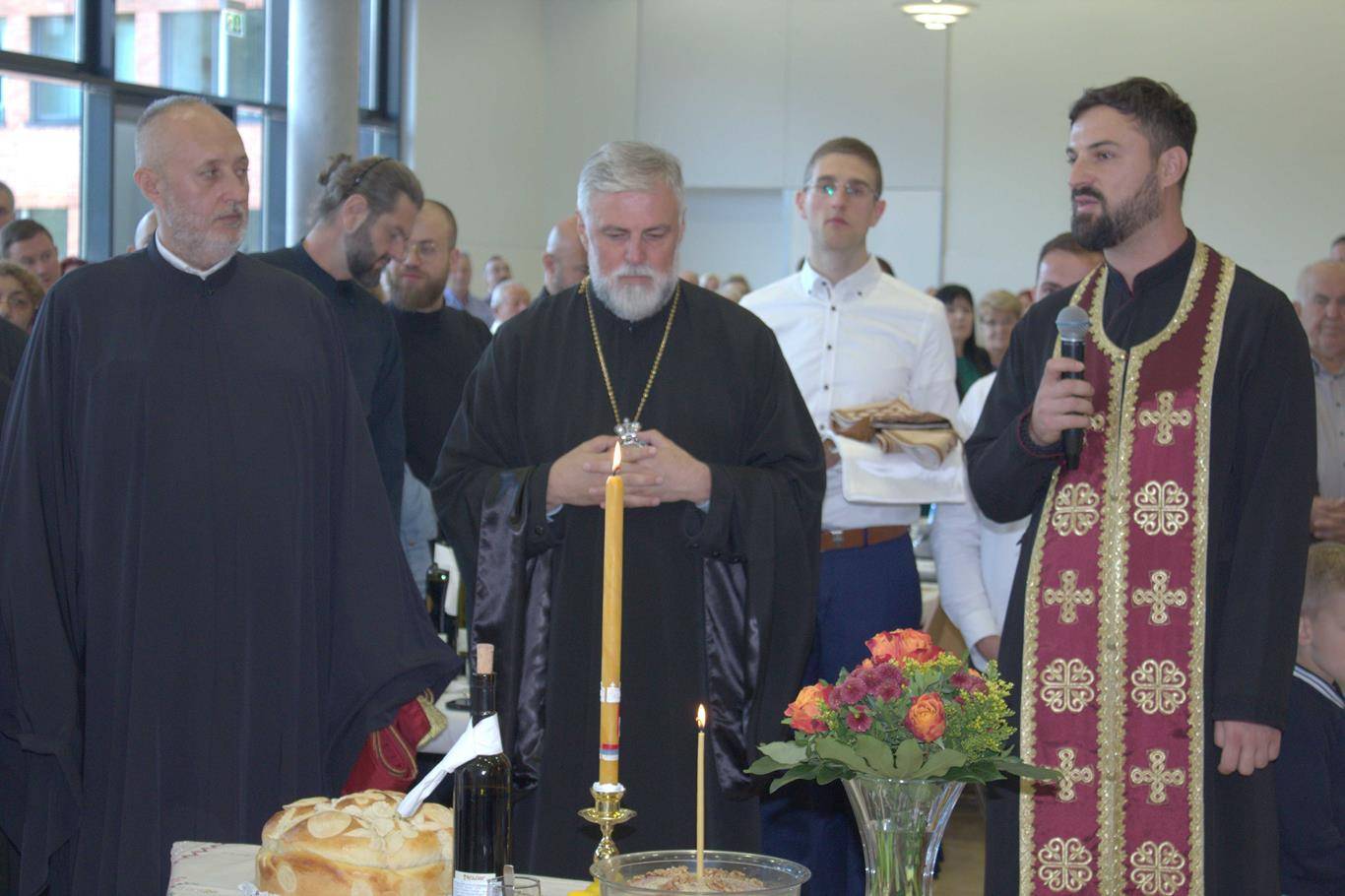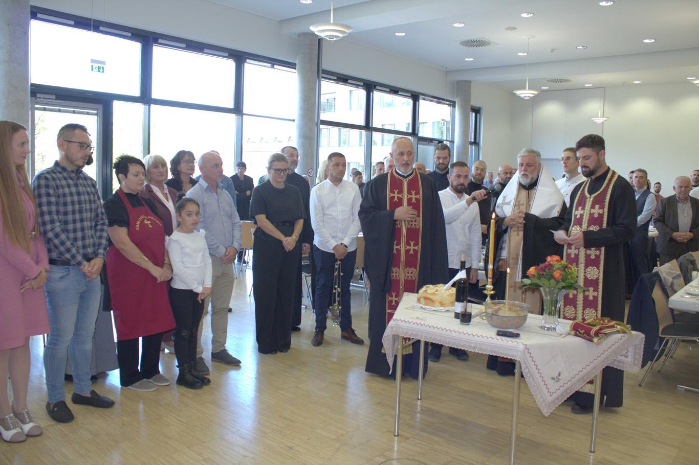 У суботу, 14. септембра, у храму Сабора српских светитеља служено је празнично вечерње са петохлебницом коме је присуствовао Његово Високопреосвештенство Архиепископ диселдорфско-берлински и Митрополит немачки г. Григорије. Након вечерњег богослужења, одржана је промоција новог романа Странац у шуми митрополита Григорија. На промоције је, осим аутора књиге, говорио и протојереј-ставрофор Гојко Перовић.