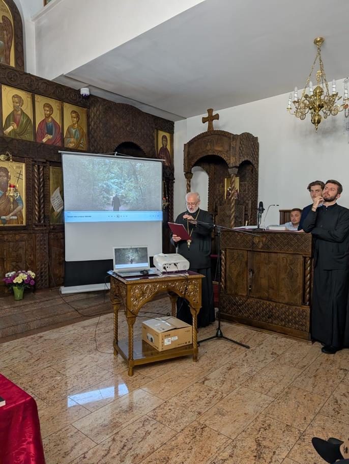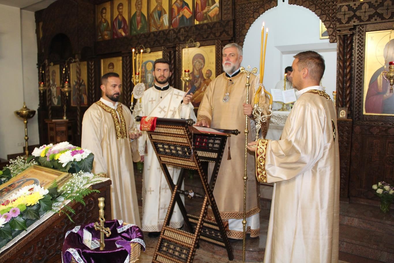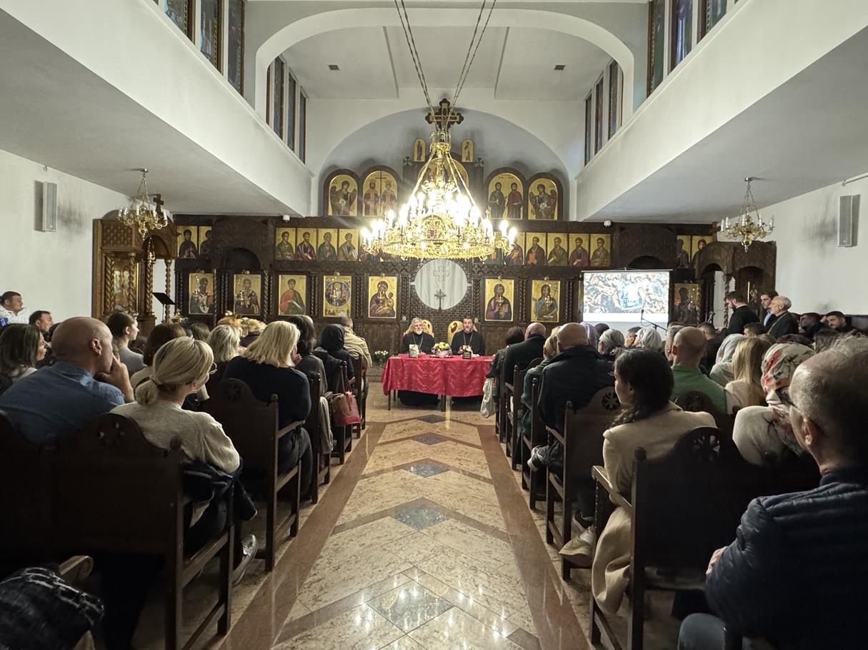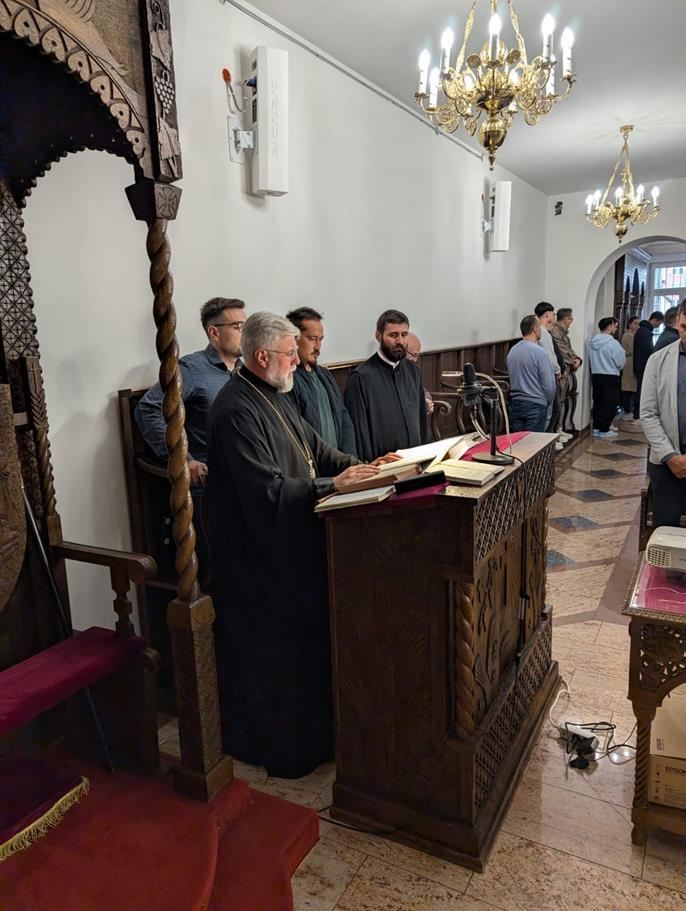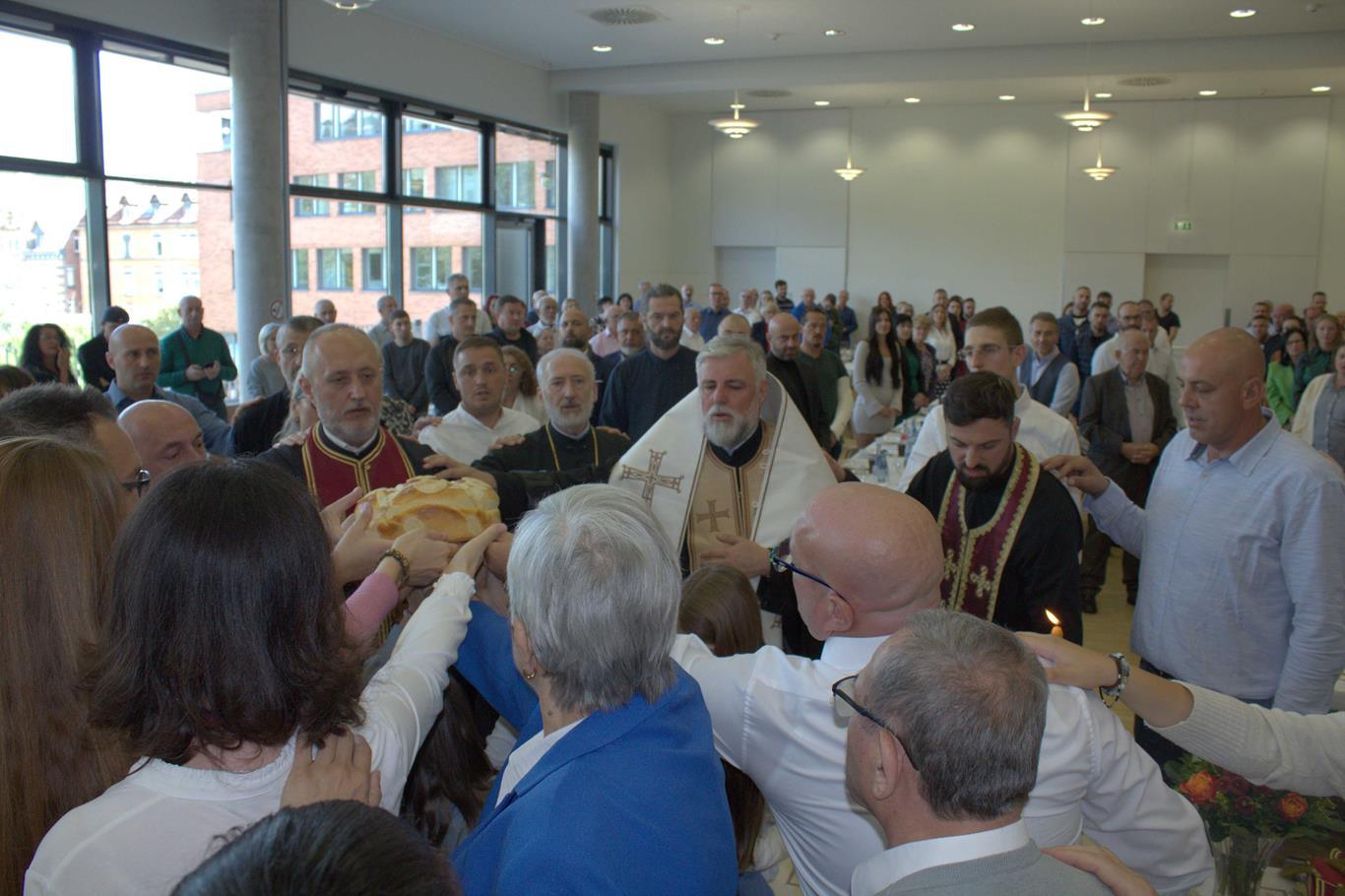 У суботу, 14. септембра, у храму Сабора српских светитеља служено је празнично вечерње са петохлебницом коме је присуствовао Његово Високопреосвештенство Архиепископ диселдорфско-берлински и Митрополит немачки г. Григорије. Након вечерњег богослужења, одржана је промоција новог романа Странац у шуми митрополита Григорија. На промоције је, осим аутора књиге, говорио и протојереј-ставрофор Гојко Перовић.