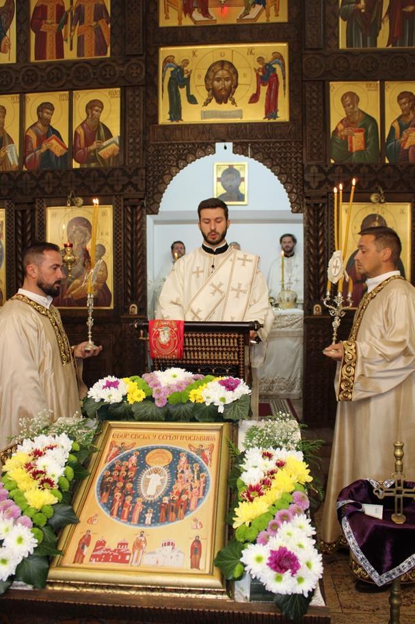 Управо то данас славимо кроз пример сабора Срба светитеља. Данас не можемо ни имена свих да поменемо, од царева и краљева, па до светих мученика и новомученика. Њих данас славимо као оне који су примивши светлост, њу исту, даље давали. Са друге стране, ми, ако хоћемо да прићемо сабору светих, па и сама реч „свети“ у себи подразумева светлост, а и светититељи се сликају са ореолима око својих глава, треба да примимо од светлости која је њима дата, али и светости. А када тако кажемо, то значи да прихватимо подвиг живота, а не да живимо живот на смрт, плашећи се смрти, жалости, таме и мрака, јер знамо где имамо да захватимо од светлости и светости. Та могућност је велики дар за нас! Опет, ако идемо и тумарамо по тами овога света, не желећи да примимо светлост, радост живота у Христу, то је страшно. Зато, бежимо од таме, бежимо од туге, бежимо од жалости у просторе светлости Христове! Боже, дај! Амин!“