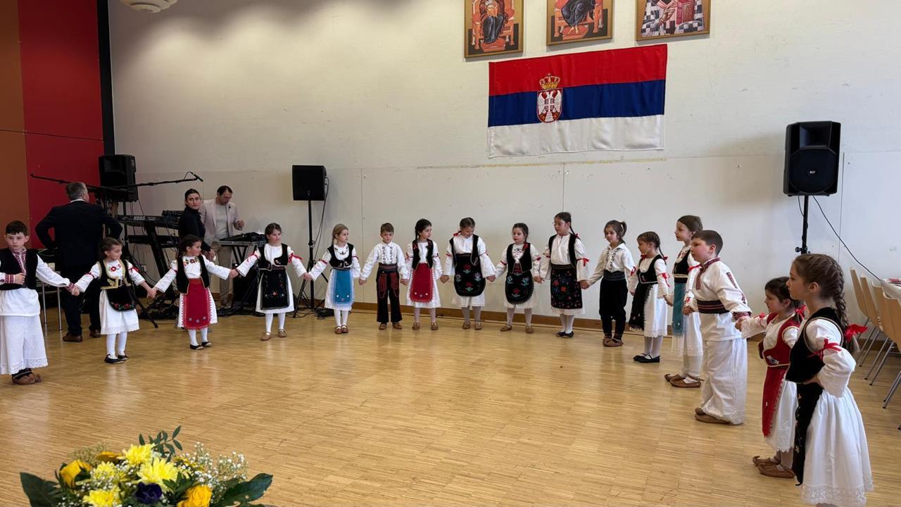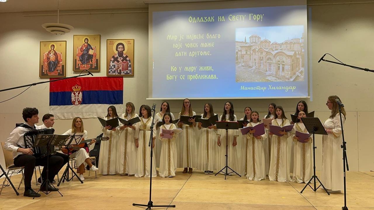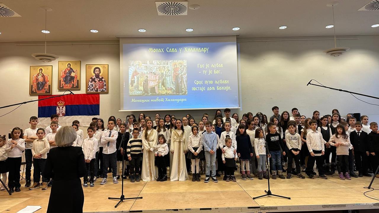 Светосавски програм приредила су деца Српске допунске школе и веронауке, као и хор при Светоархангелском храму у Гепингену.