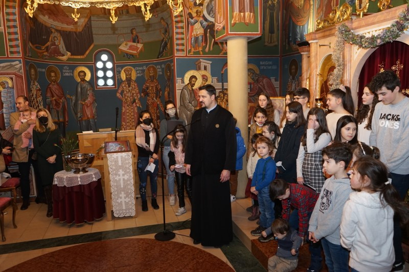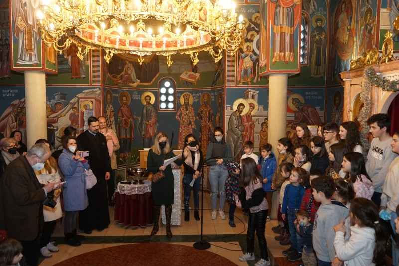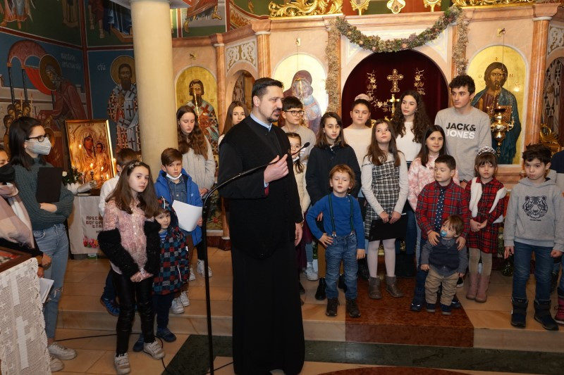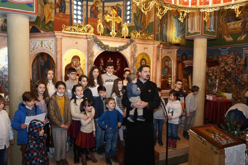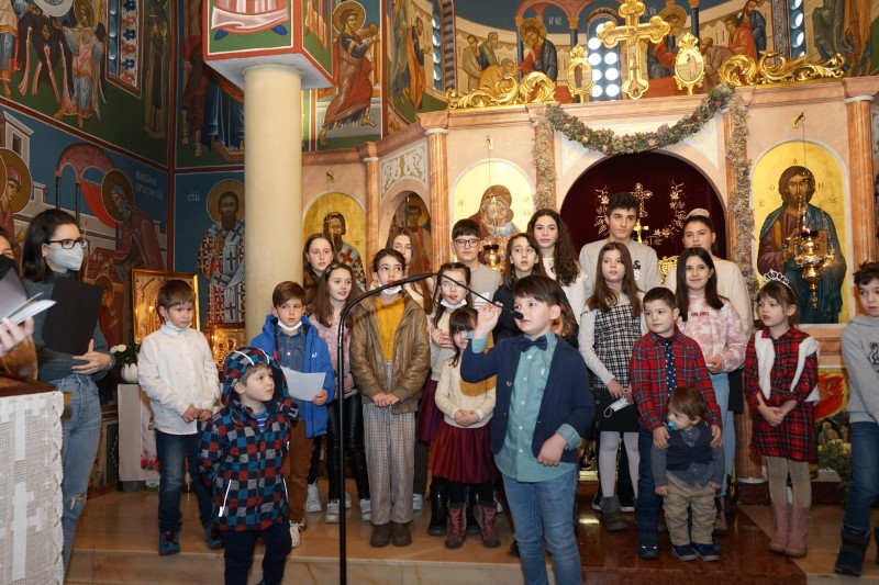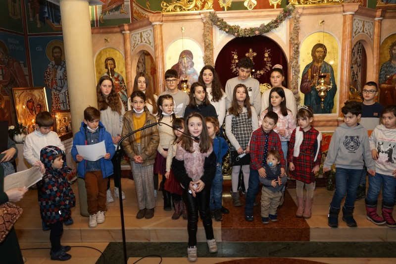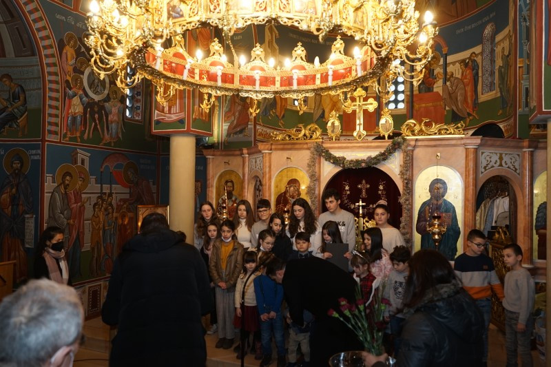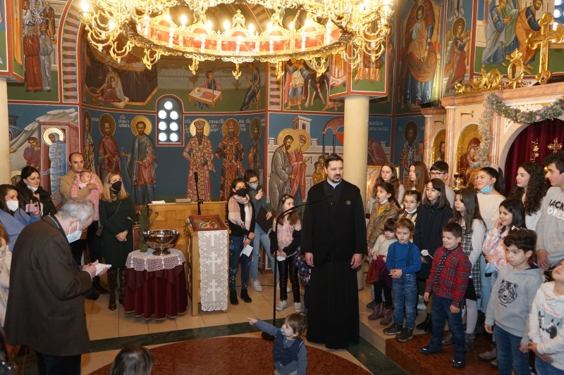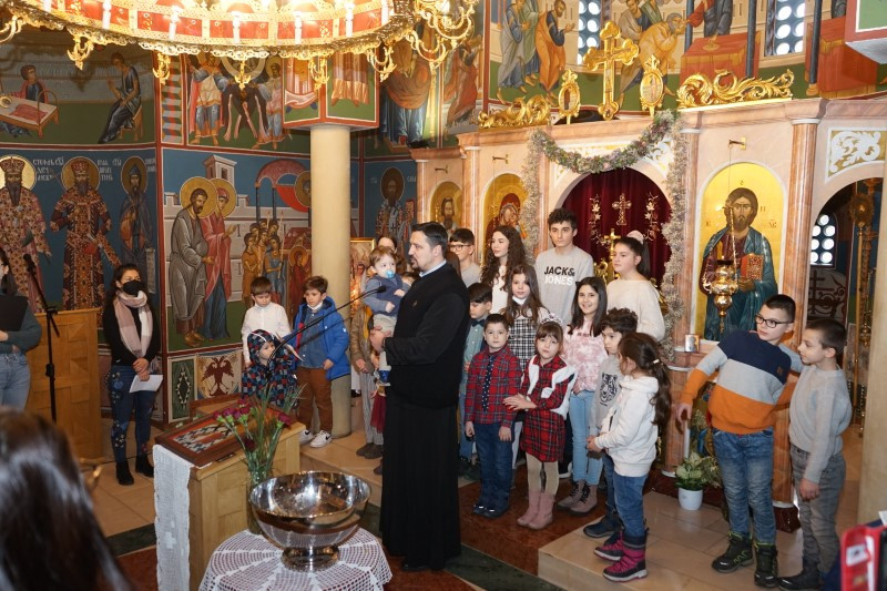 Ученици млађих разреда српске школе заједно са својим учитељима отпевавши химну рецитовали су стихове посвећене Светом Сави. Захваљујући парохијанкама др Мирјани Андрејевић и Далиборки Денеке, сва деца која су узела учешћа, добила су пригодне поклоне.
