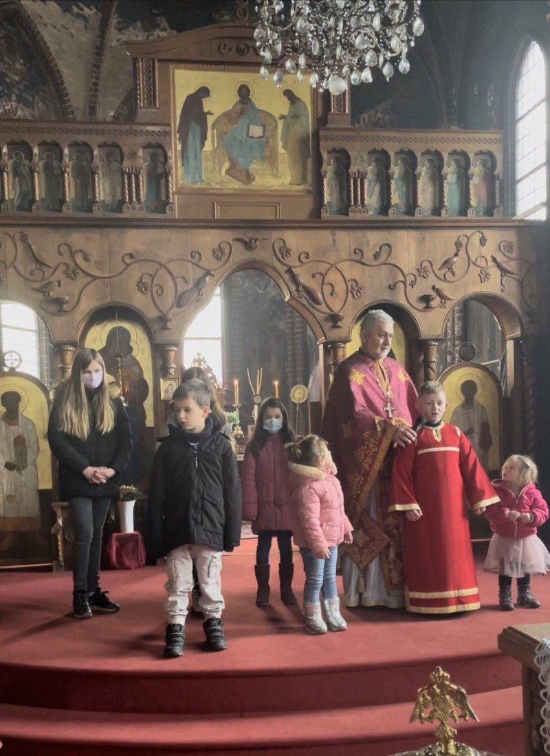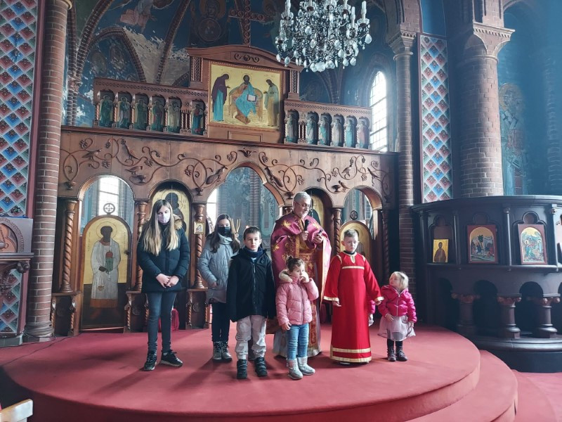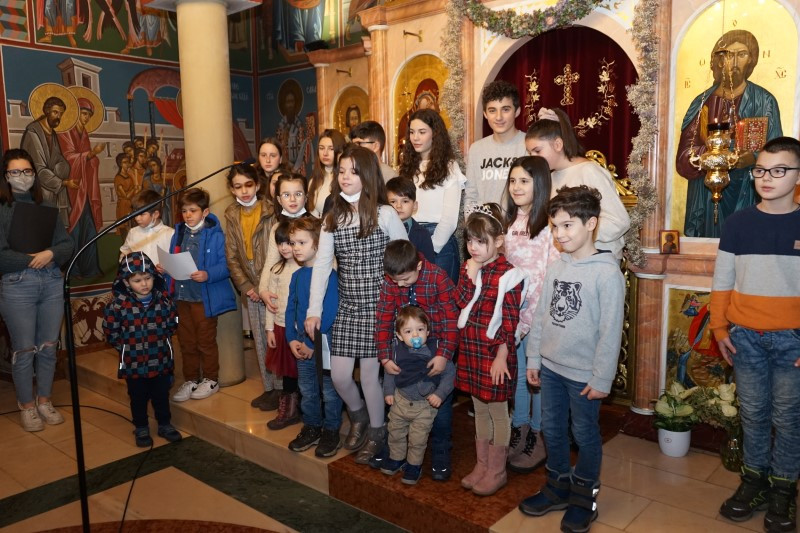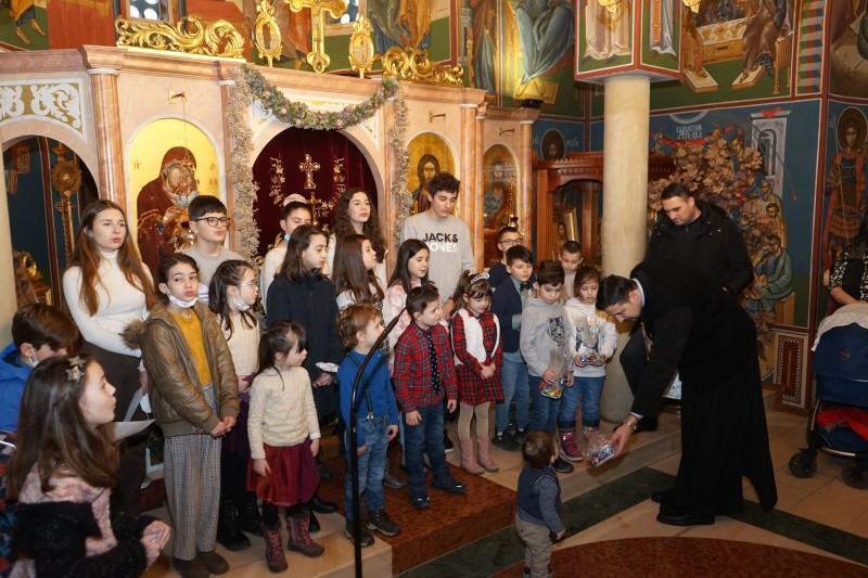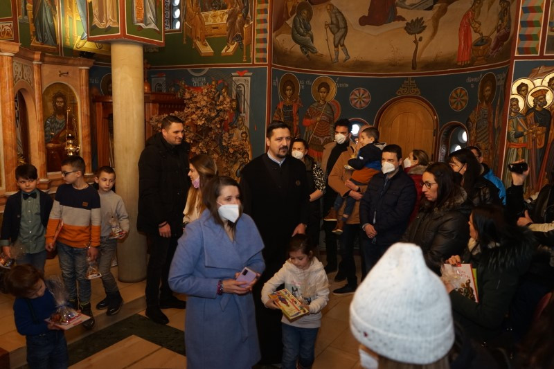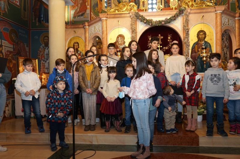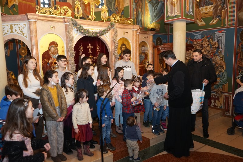 Ученици млађих разреда српске школе заједно са својим учитељима отпевавши химну рецитовали су стихове посвећене Светом Сави. Захваљујући парохијанкама др Мирјани Андрејевић и Далиборки Денеке, сва деца која су узела учешћа, добила су пригодне поклоне.