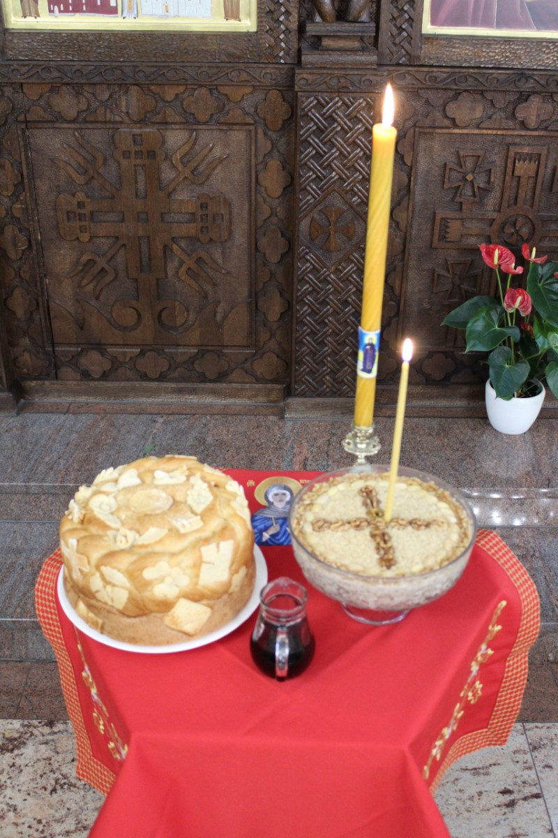 Након Евхаристијског сабрања, настављена је славска свечаност благосиљањем славских знамења и резањем славског колача.
