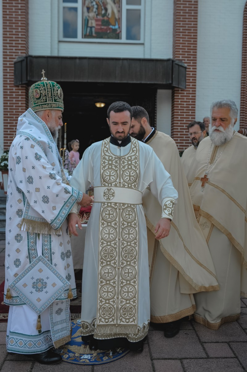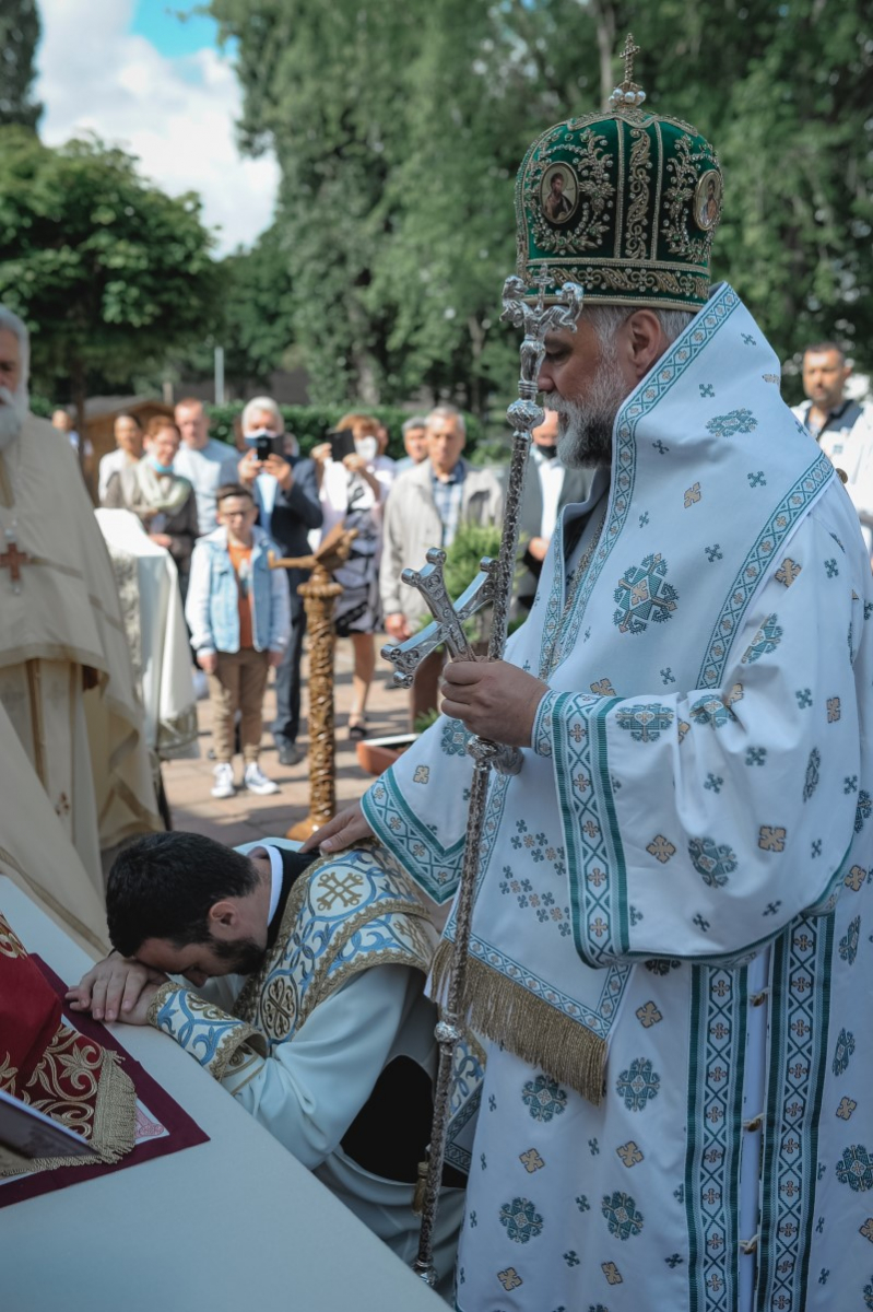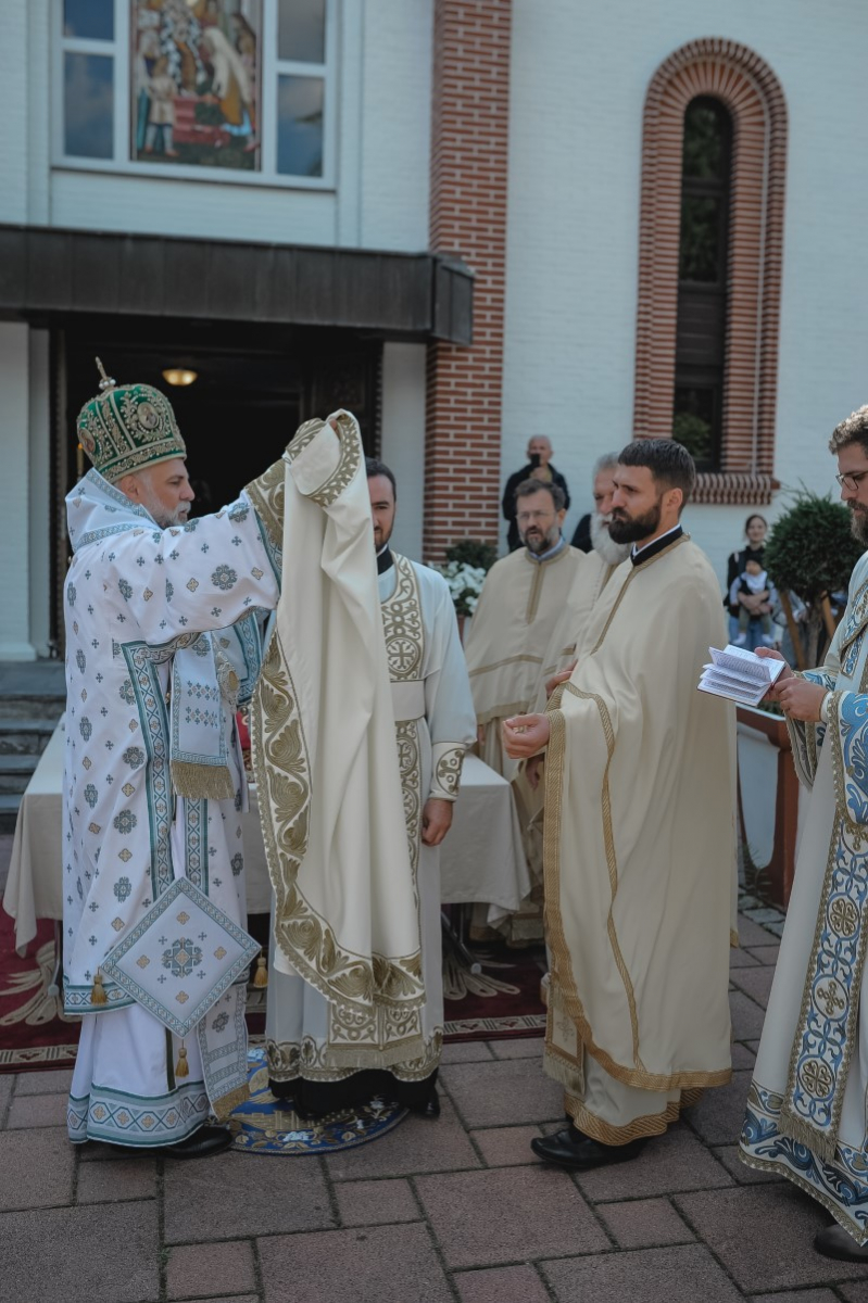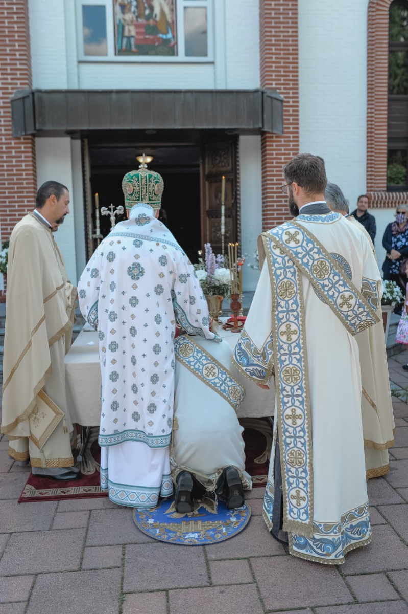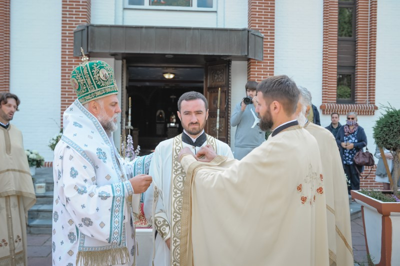 Овом приликом верни народ има је прилику да види и молитвено учествује у чину рукоположења протођакона Александра Секулића у свештеника. Отац Александар постављен је за пароха диселдорфске парохије.