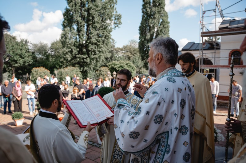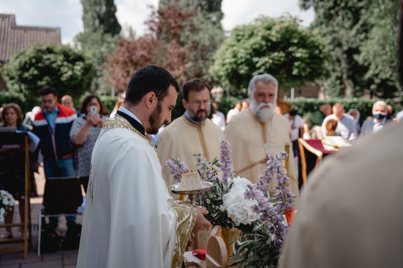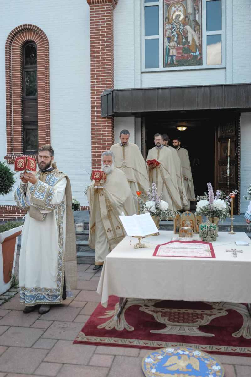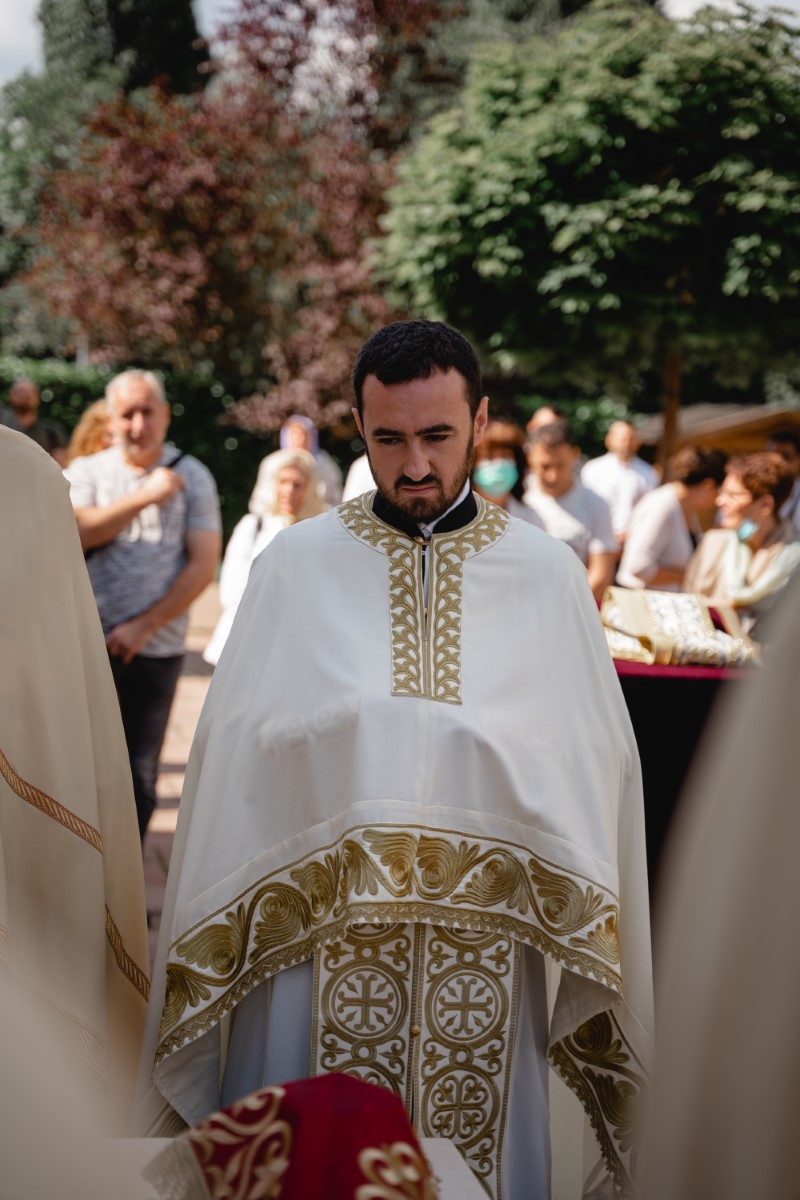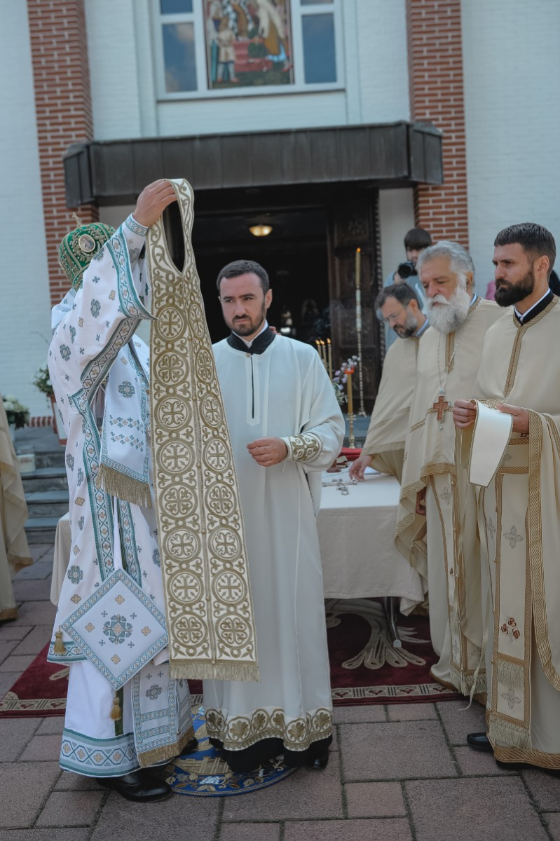 Овом приликом верни народ има је прилику да види и молитвено учествује у чину рукоположења протођакона Александра Секулића у свештеника. Отац Александар постављен је за пароха диселдорфске парохије.