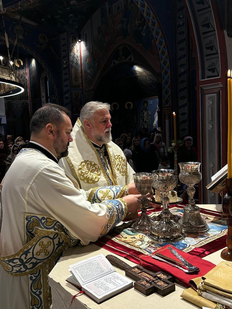 Његовом Високопреосвештенству саслуживали су: протојереј-ставрофор Небојша Ракић, јереј Александар Секулић, јереј Саша Врачевић и јерођакон Василије Старовлах.