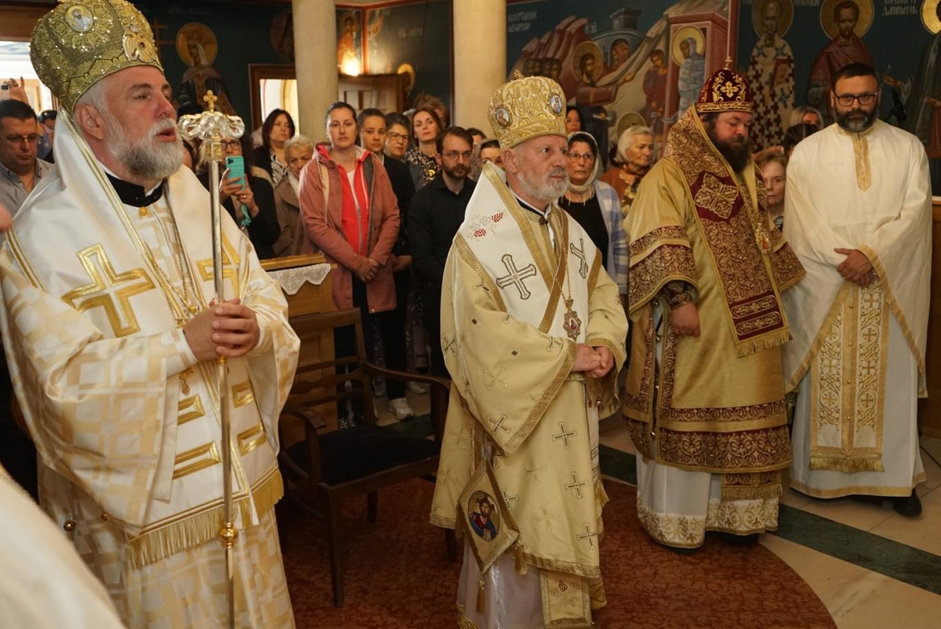 А ја посебно захваљујем Епископу Григорију, моме брату у Христу са којим сам провео многе дане док је још био у Херцеговини, али и сада овде, и са којим се у сабору архијереја трудимо да сведочимо име Божије и да, на неки начин, својим постојањем дајемо пример и привучемо тај народ, да му покажемо да Литургија носи вечни живот.“