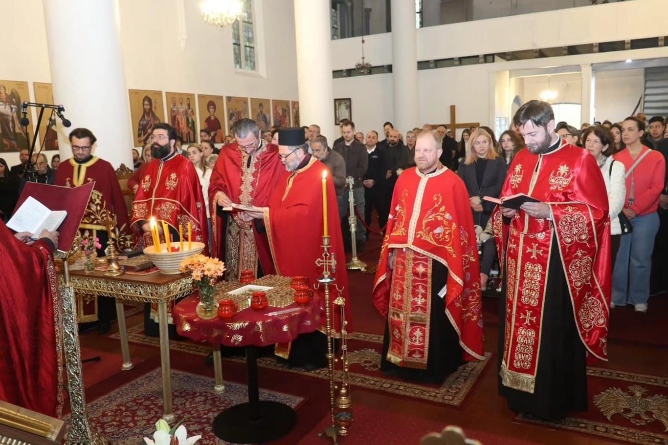 У данима у којима се сјећамо Божијег плана спасења и спасоносних дјела која је Богочовјек учинио ради нас и ради нашег спасења, дортмундски храм Светог апостола Луке мјесто је сабрања великог броја вјерних. Тако је било и на Велики понедјељак, 29. априла 2024. године, када је већ традиционално служена Света тајна јелеоосвећења као молитвени принос заједнице за болујуће слуге Божије.
