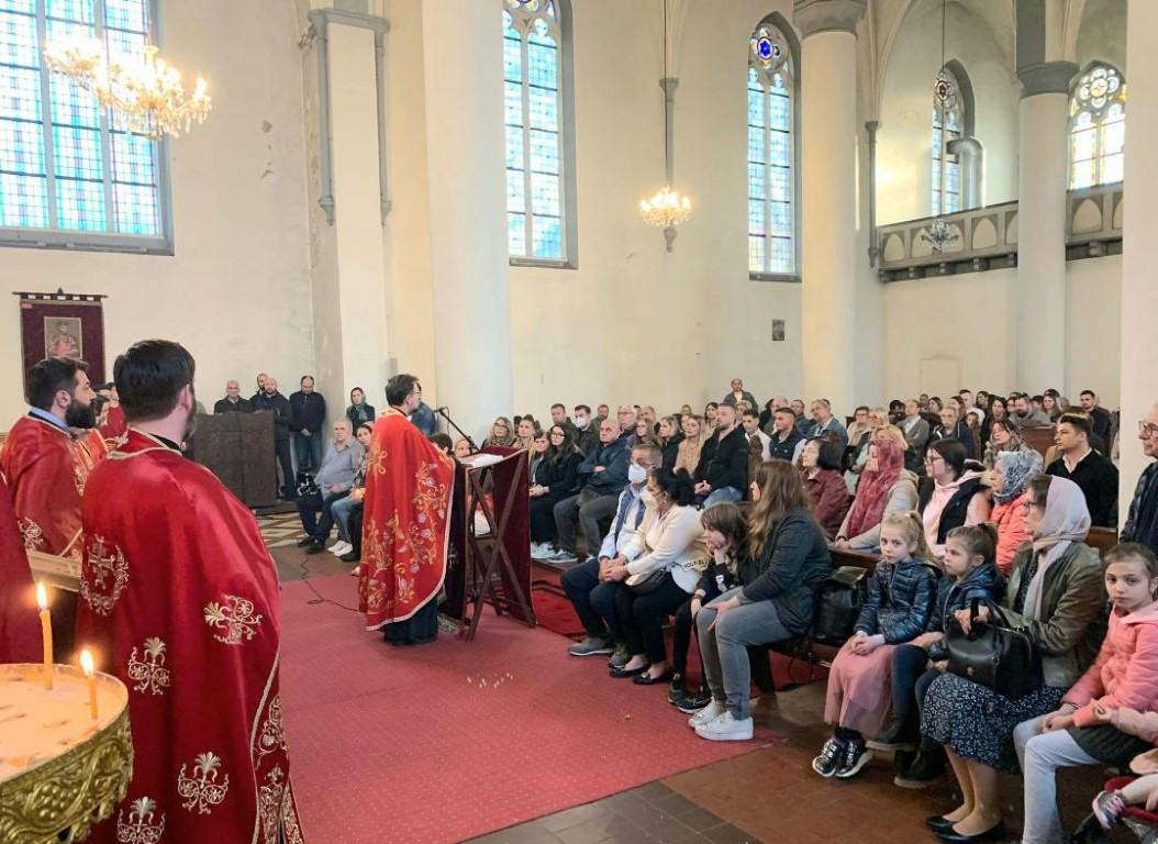 У данима у којима се сјећамо Божијег домостроја спасења и величанствених дјела која је Богочовјек Христос учинио ради нас и ради нашег спасења дортмундски храм Светог апостола Луке мјесто је сабрања великог броја вјерних. Тако је било и на Велики понедељак, 18. априла 2022. године, када је већ традиционално служена Света Тајна Јелеоосвећења као молитвени принос заједнице за болујуће слуге Божије, које је болест између осталог онеспособила да активно учествују у Литургијским сабрањима.