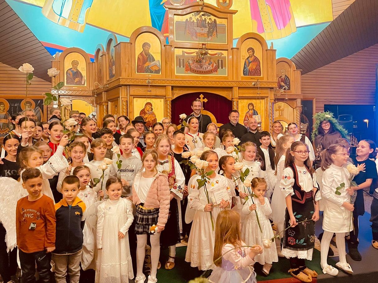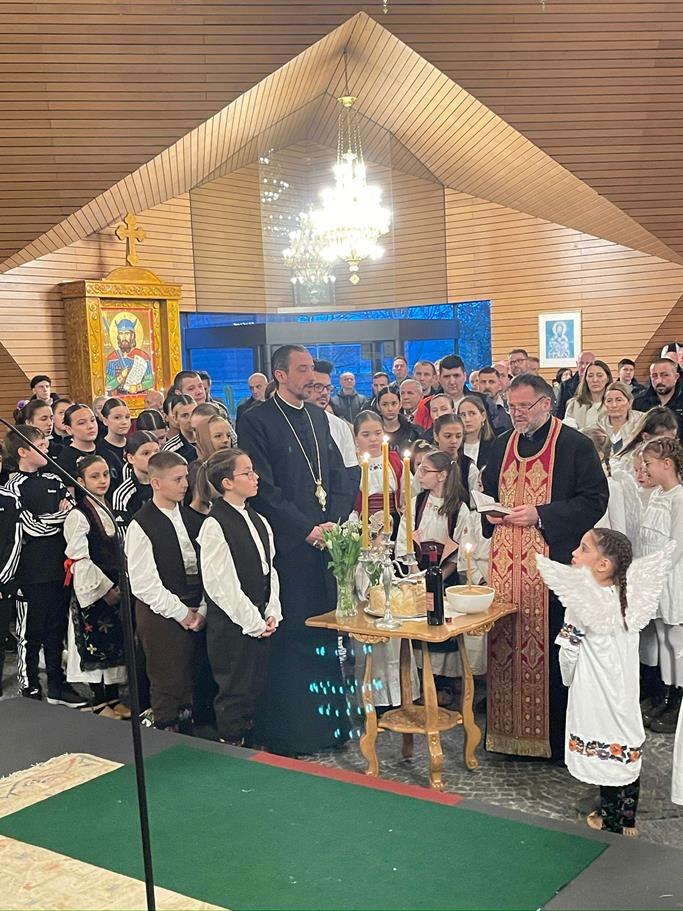 После поделе пакетића послужена је богата трпеза у црквеној сали, где је наступио и најмлађи ансамбл КУД-а „Коло“ из Есена.