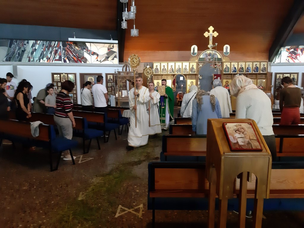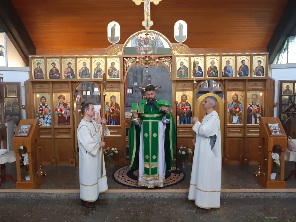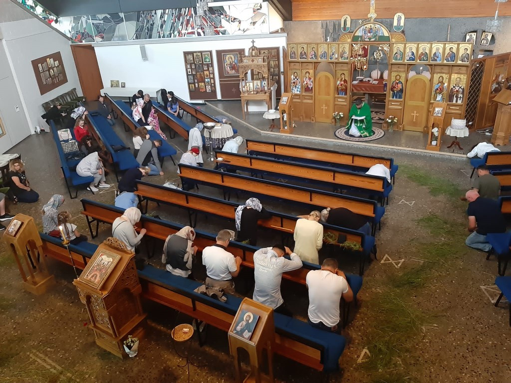 Празнична свечаност Свете Тројице наставила се у недељу (12.06.2022), Светом Литургијом и коленопреклоним молитвама у продужетку Свете Литургије уз вечерње богослужење.