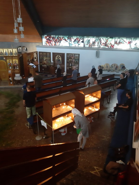 ,,После дужег времена поново смо у храму поводом празничног дана Свете Тројице, без мера и ограничења произносили наше молитве Господу, у заједници једни са другима, у нади за живот вечни, надајући се у ону вечну заједницу са Васкрслим и Вазнесеним Господом, коме се нада свака душа сабрана на Литургији на дан Свесвете Педесетнице, са оном истом надом коју су имали Свети апостоли, на исти дан сабрани у Јерусалиму, када им се јавио Свети Дух у виду огњених језика. Са том истом надом и ми се молисмо у том Светом дану, да и ми доживимо ту исту и непоновљиву радост празника Свете и Свесвете Тројице, у Благоме Оцу који од вечности постоји, а кроза Сина који се у историји човечанства родио и живео са нама, у Духу који вечно исходи, а све ради нас и ради нашега спасења. Амин.“