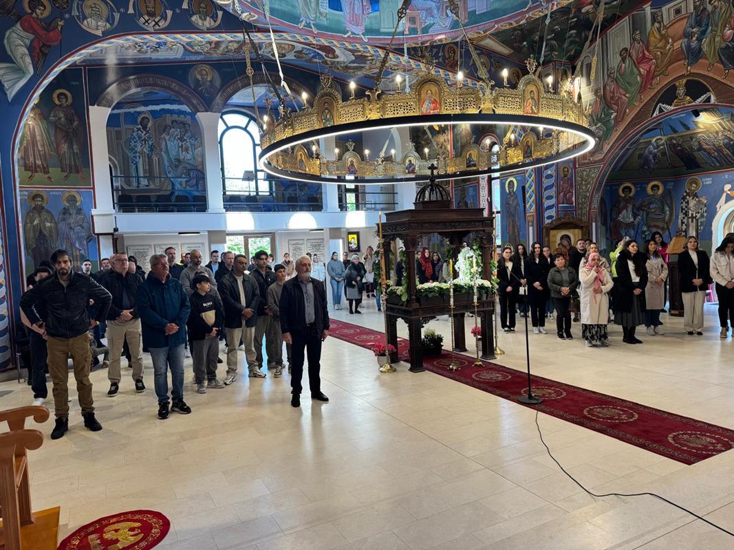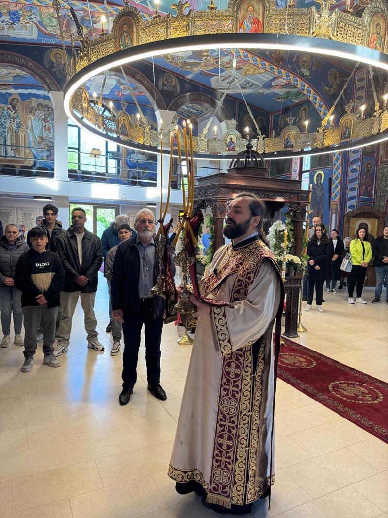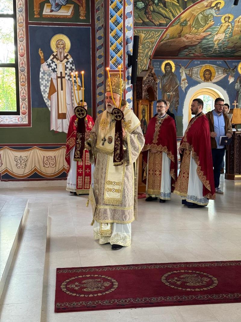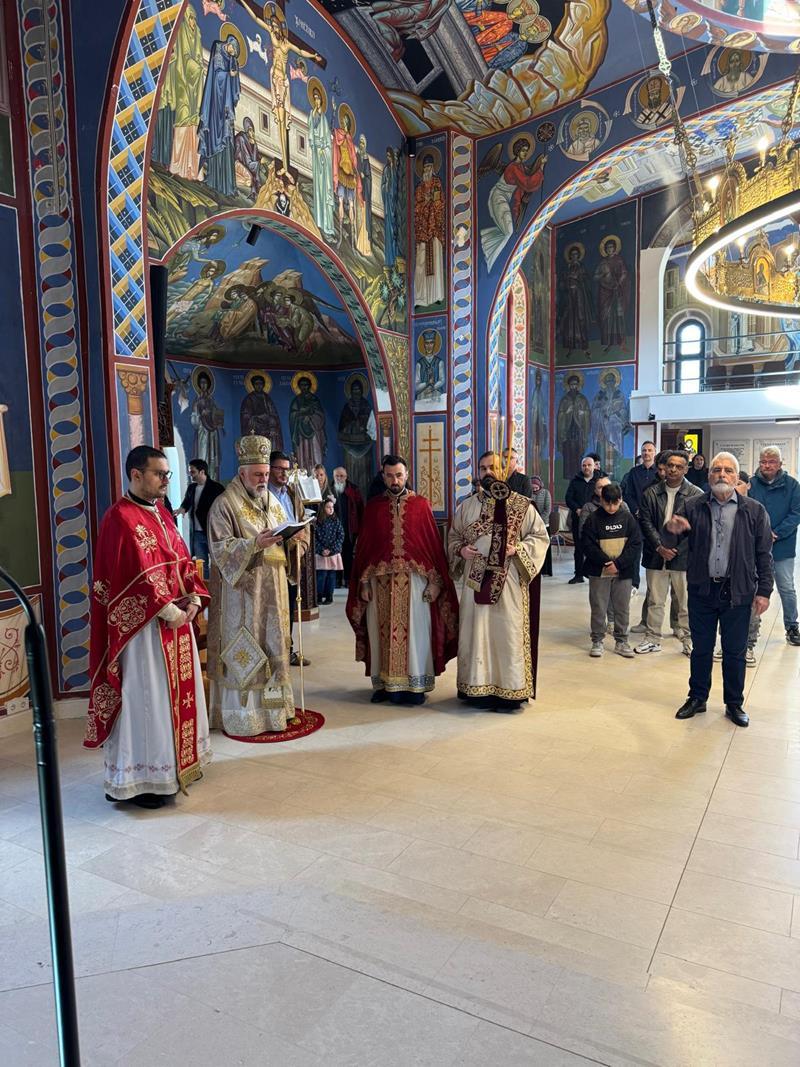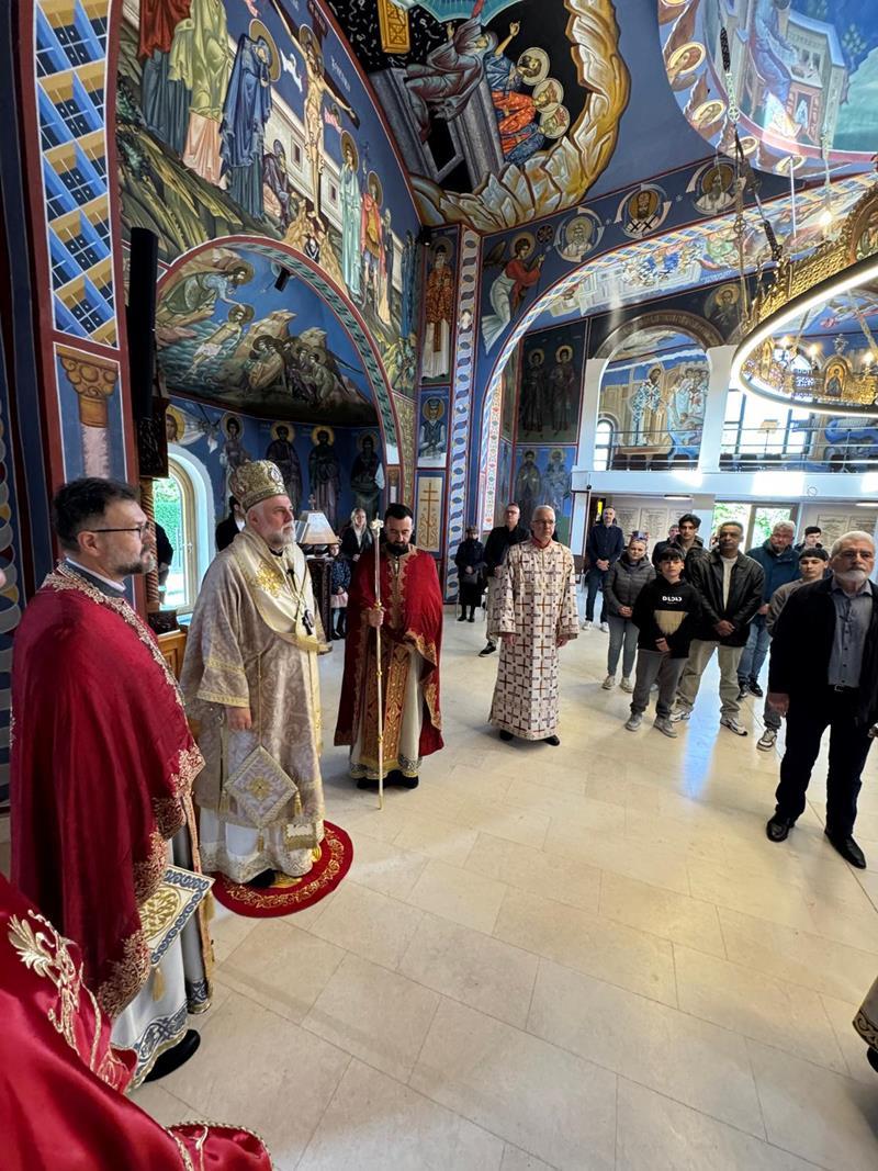 На Велику суботу, 19. априла 2025. године, Његово Високопреосвештенство Архиепископ диселдорфско-берлински и Митрополит немачки г. Григорије служио је свету Литургију у Саборном храму Светог Саве у Диселдорфу.