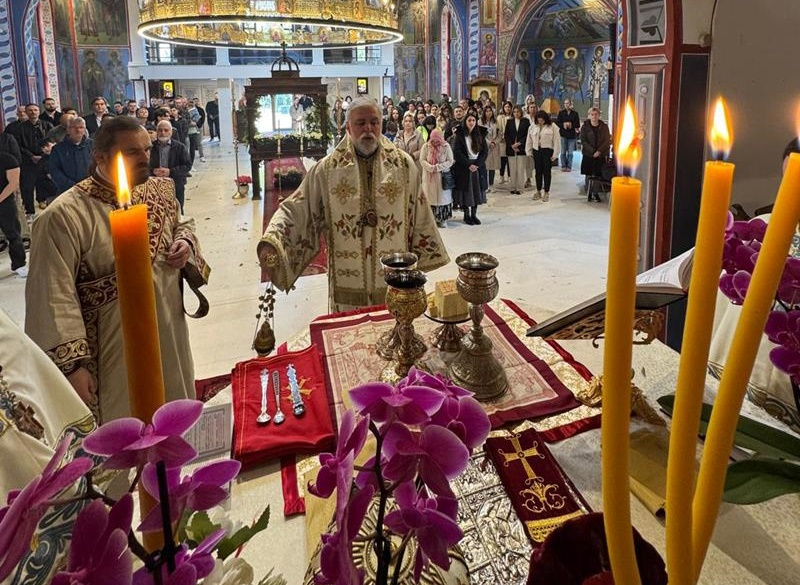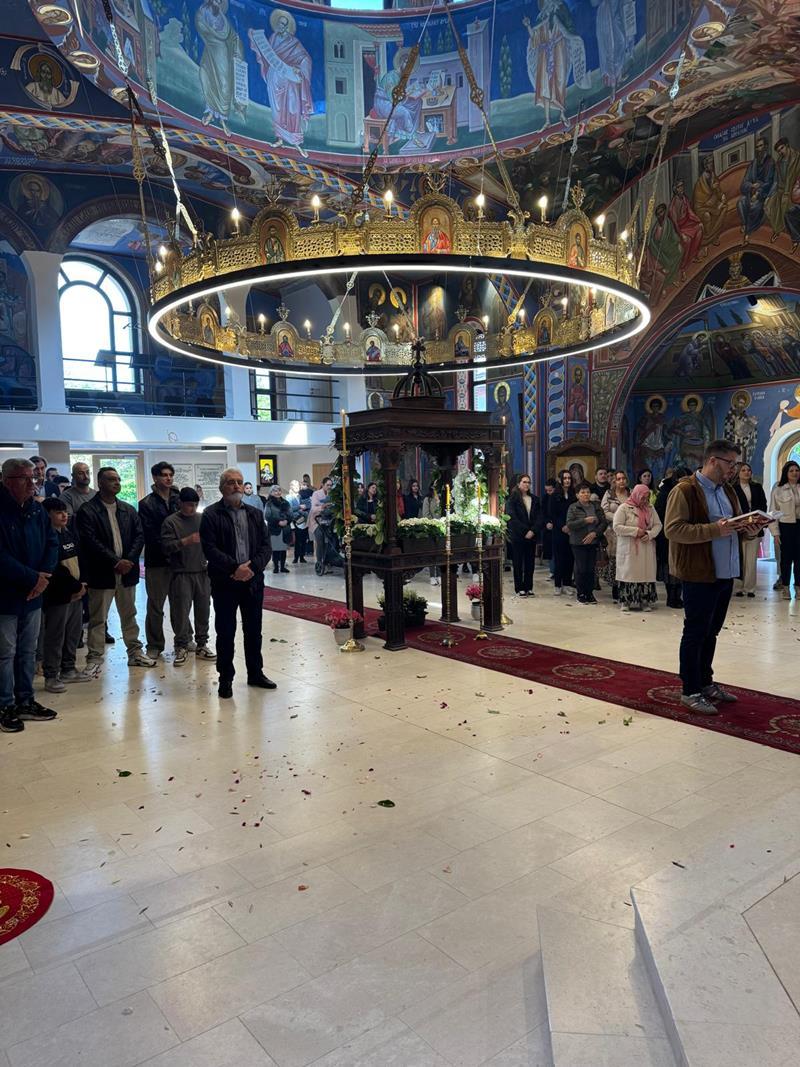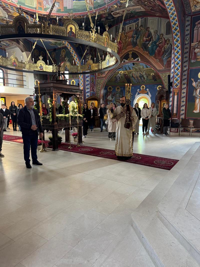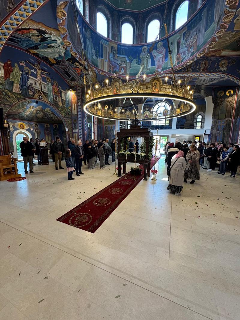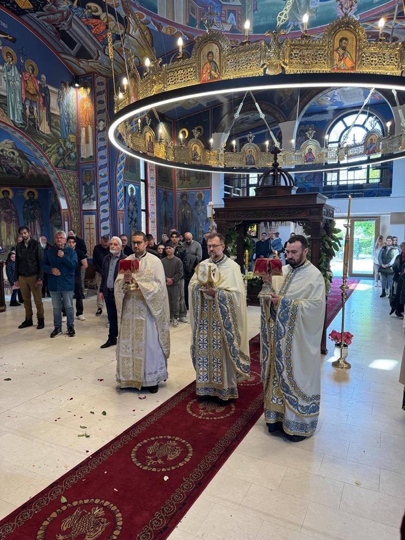 На Велику суботу, 19. априла 2025. године, Његово Високопреосвештенство Архиепископ диселдорфско-берлински и Митрополит немачки г. Григорије служио је свету Литургију у Саборном храму Светог Саве у Диселдорфу.